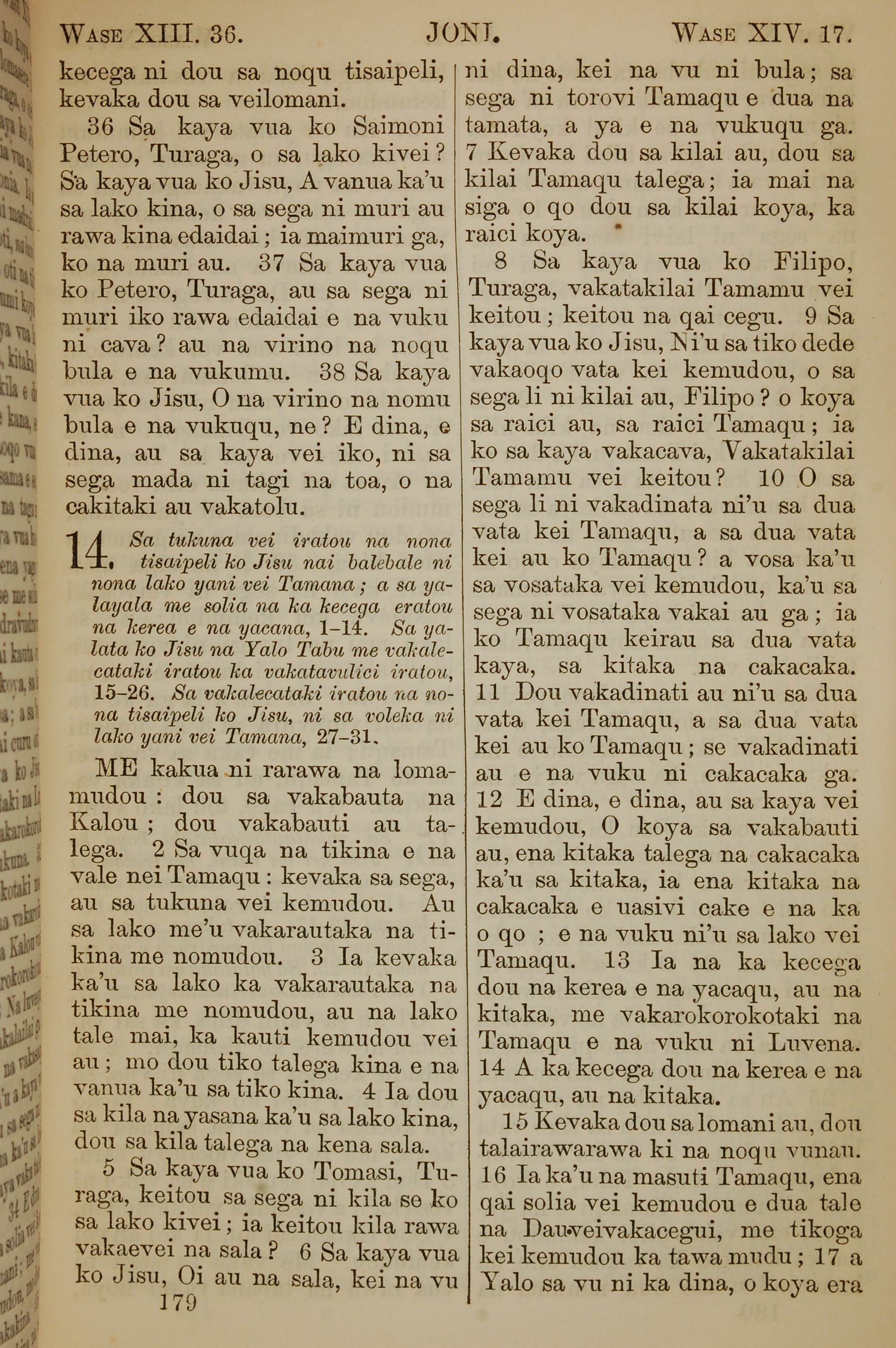 1858年斐濟文新約全書 約翰福音 13 章 36 節到 14 章 17 節