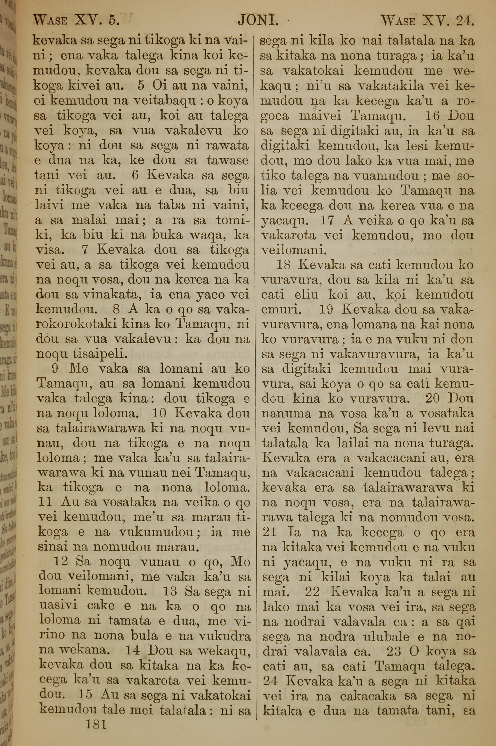 1858年斐濟文新約全書 約翰福音 15 章 5 節到 15 章 24 節