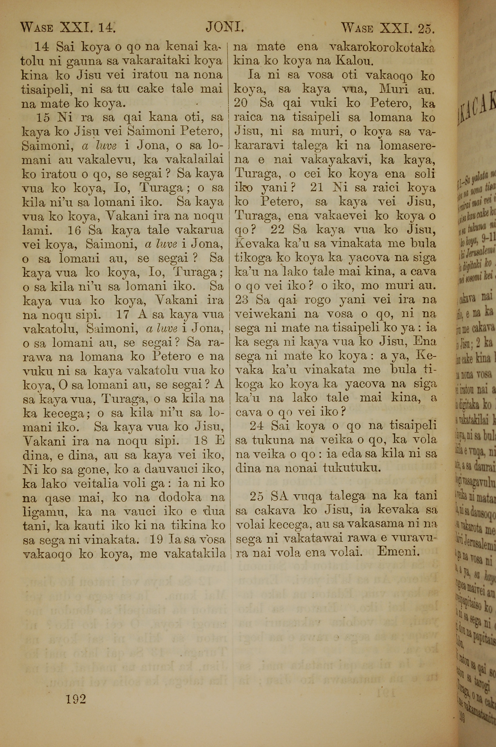 1858年斐濟文新約全書 約翰福音 21 章 14 節到 21 章 25 節