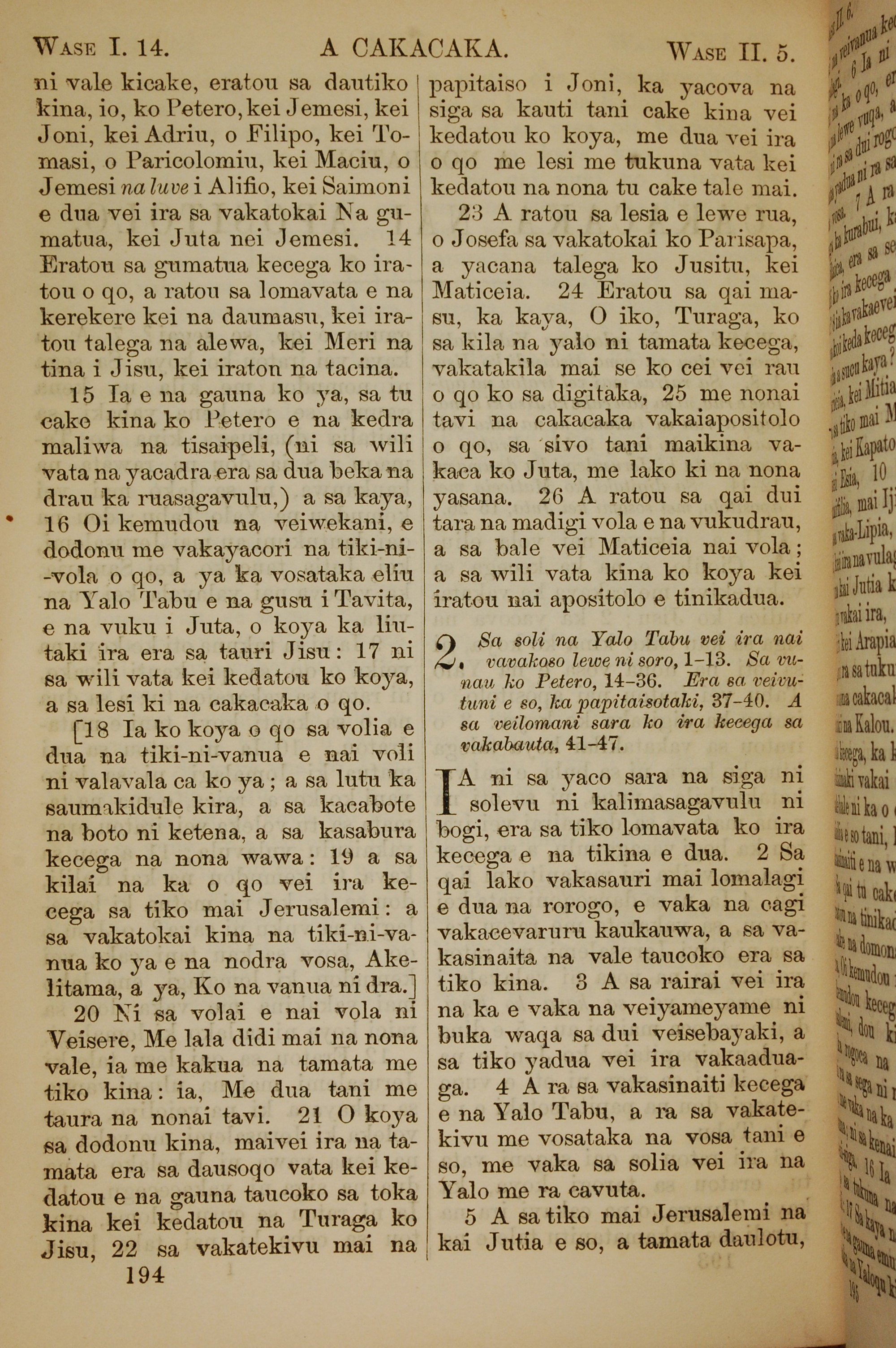 1858年斐濟文新約全書 使徒行傳 1 章 14 節到 2 章 5 節