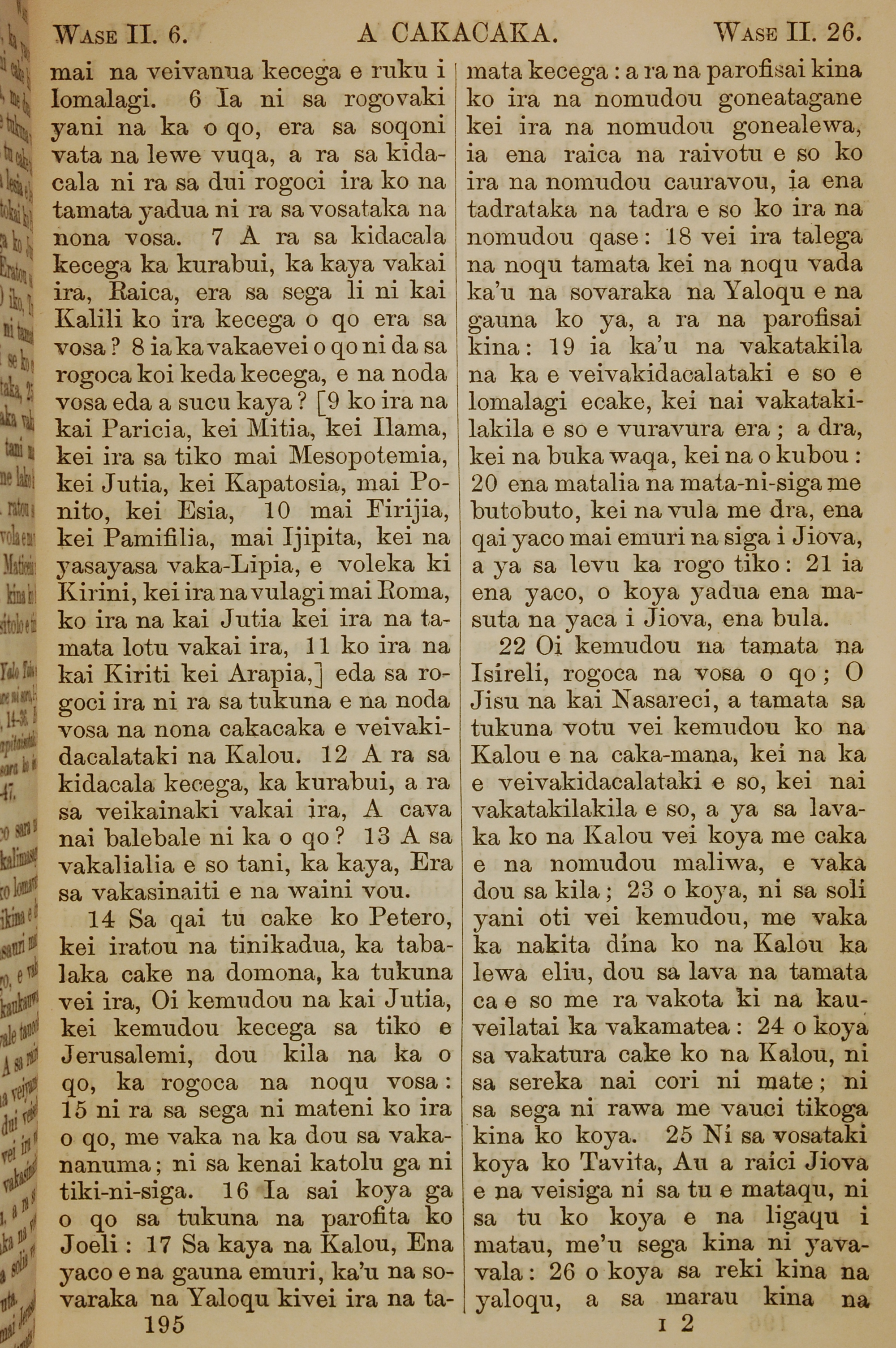 1858年斐濟文新約全書 使徒行傳 2 章 6 節到 2 章 26 節