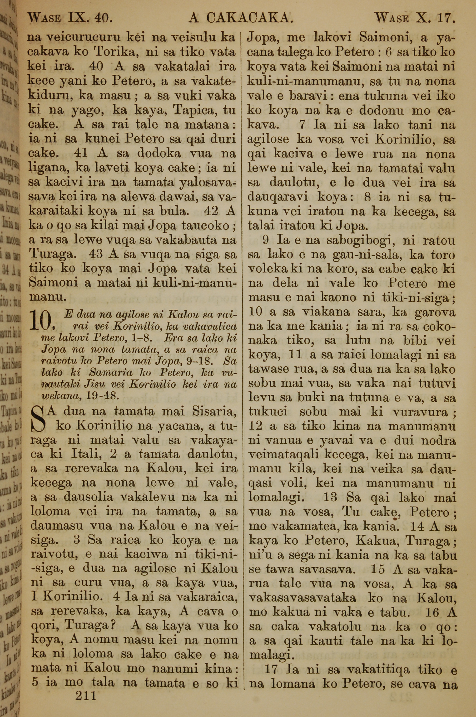 1858年斐濟文新約全書 使徒行傳 9 章 40 節到 10 章 17 節
