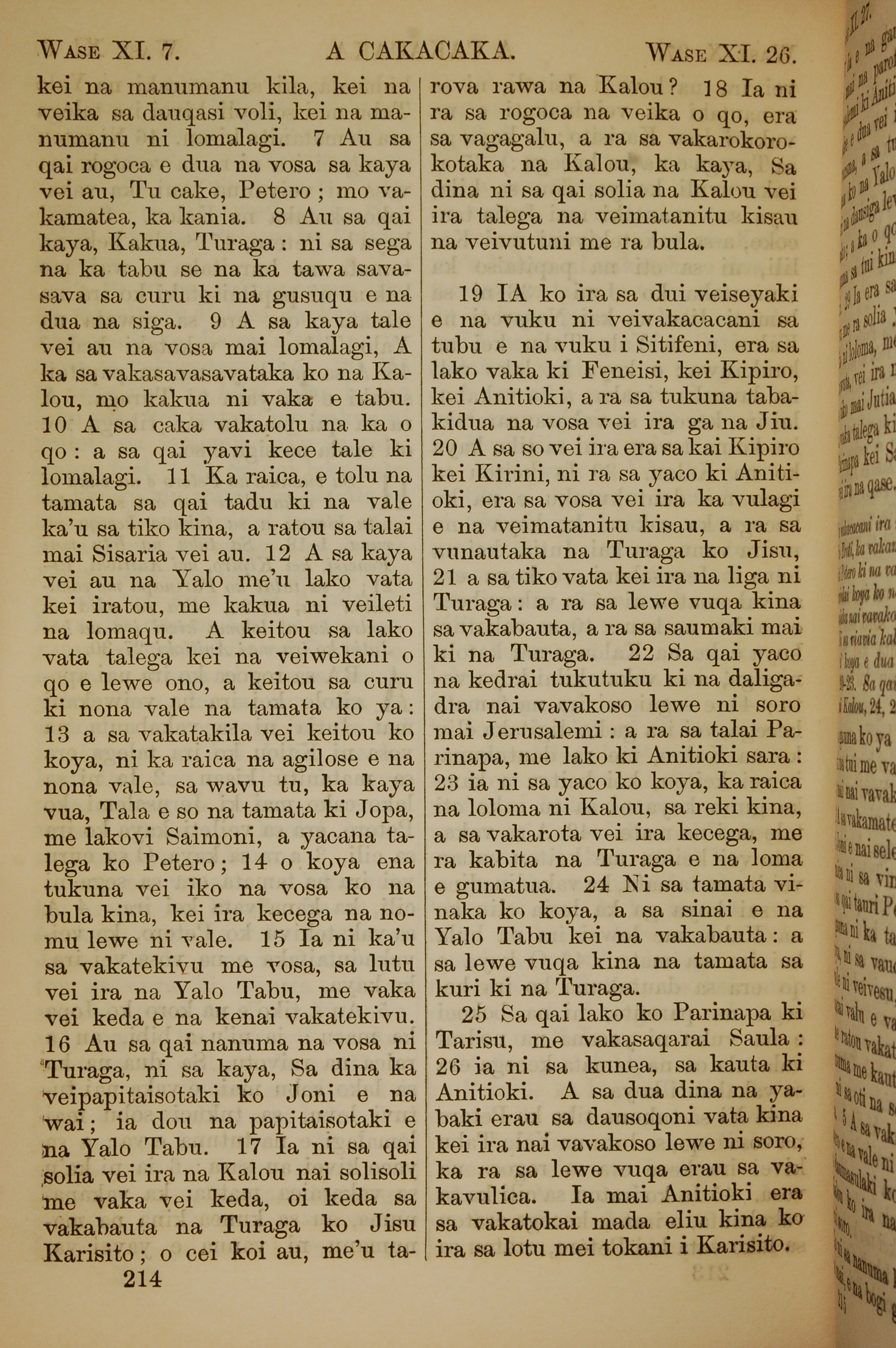 1858年斐濟文新約全書 使徒行傳 11 章 7 節到 11 章 26 節