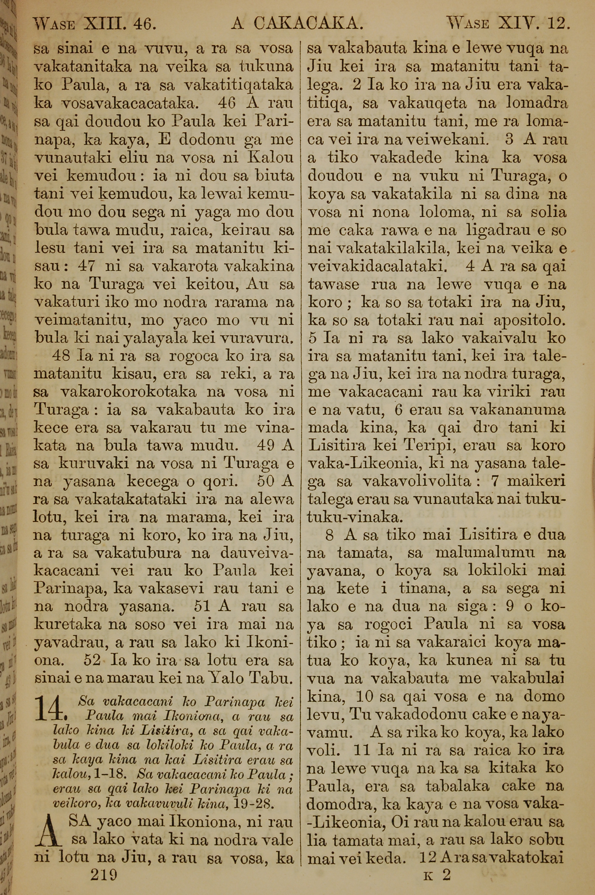 1858年斐濟文新約全書 使徒行傳 13 章 46 節到 14 章 12 節