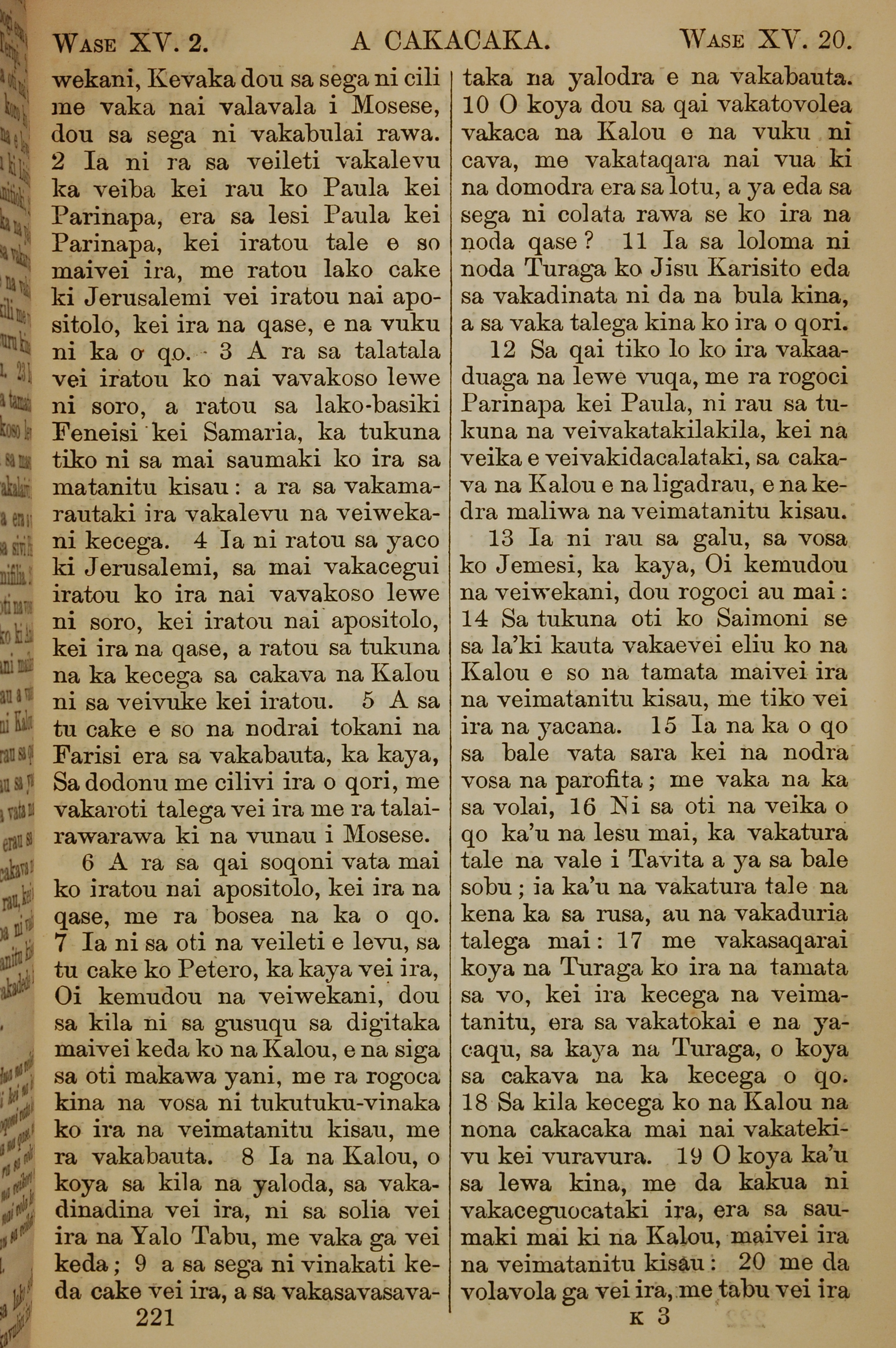 1858年斐濟文新約全書 使徒行傳 15 章 2 節到 15 章 20 節