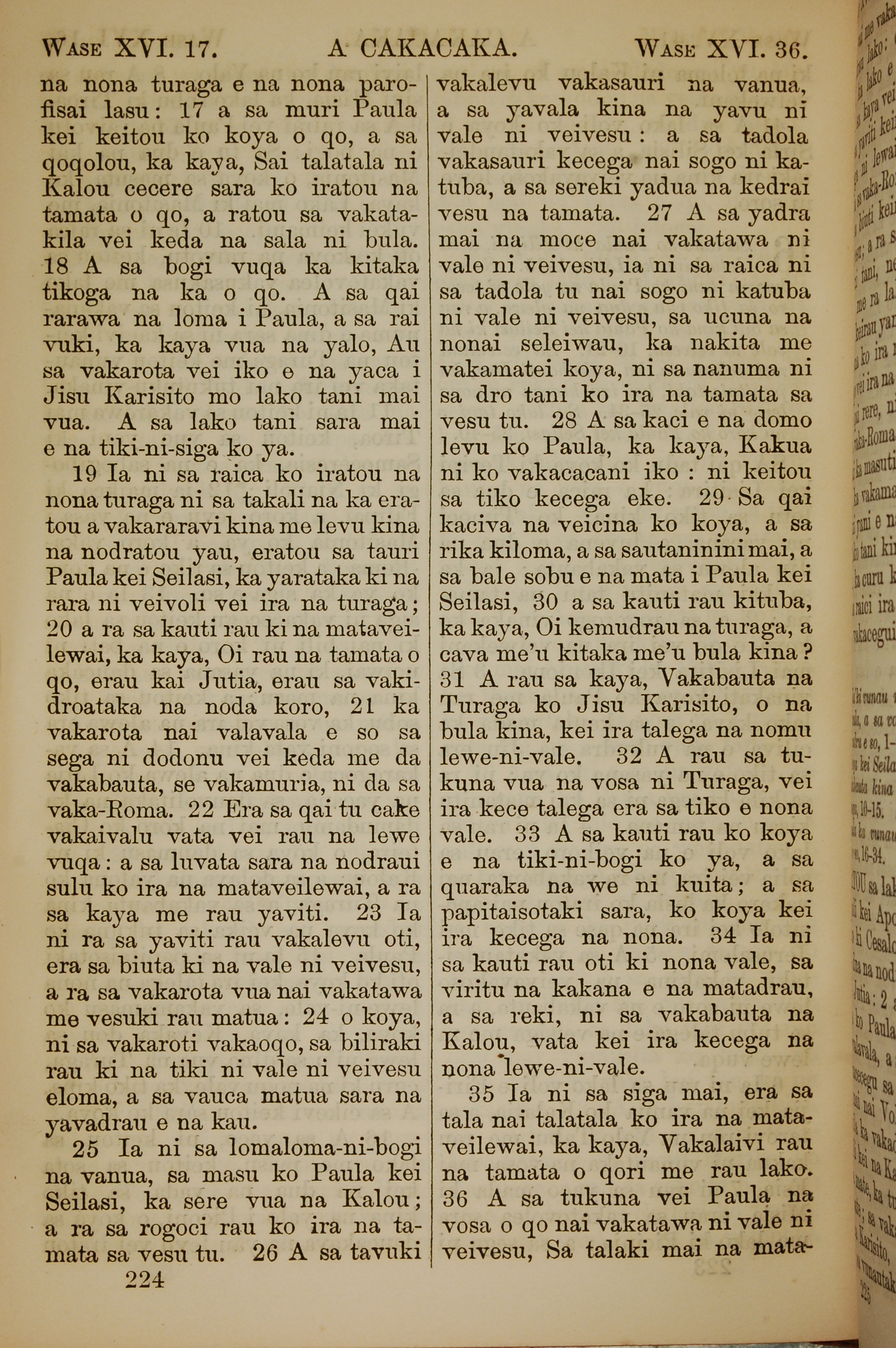 1858年斐濟文新約全書 使徒行傳 16 章 17 節到 16 章 36 節
