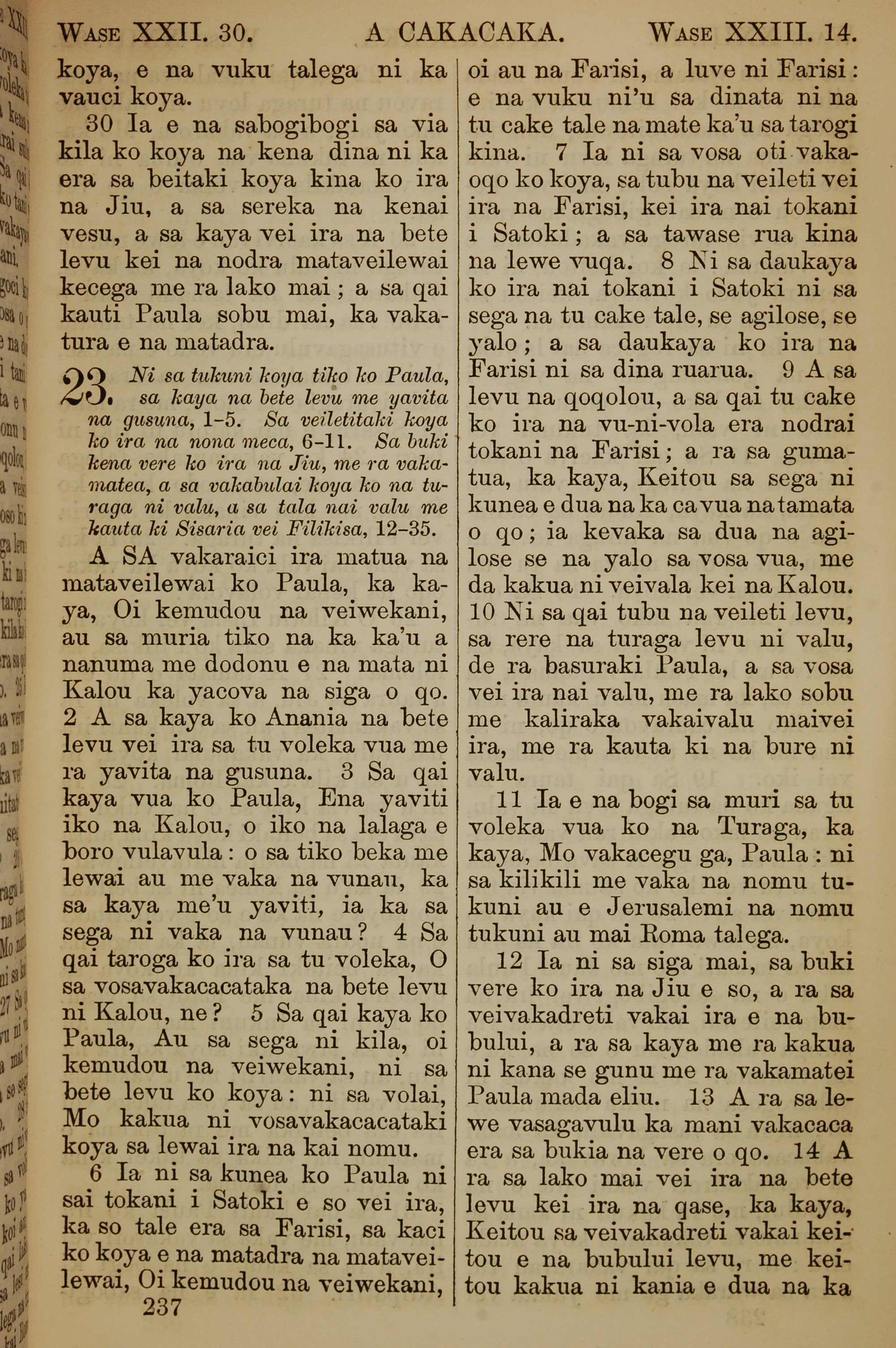 1858年斐濟文新約全書 使徒行傳 22 章 30 節到 23 章 14 節