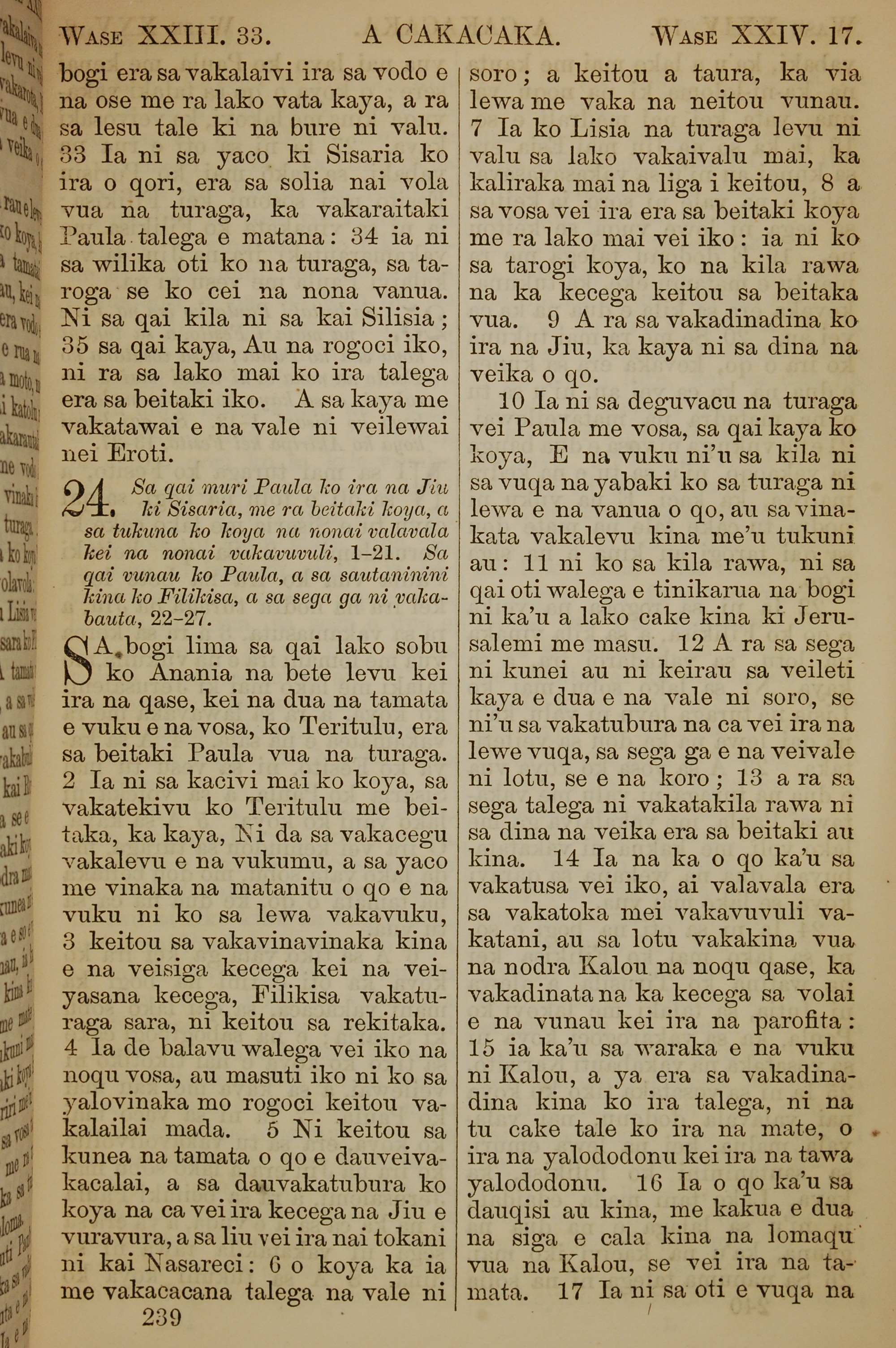 1858年斐濟文新約全書 使徒行傳 23 章 32 節到 24 章 17 節