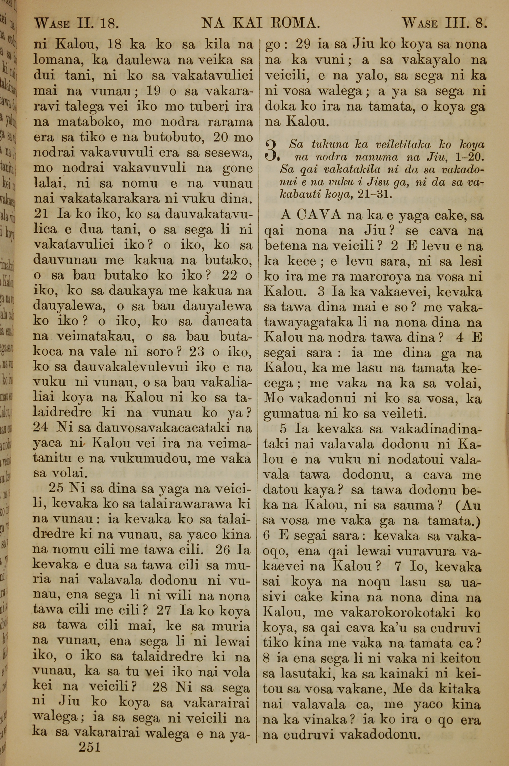 1858年斐濟文新約全書 羅馬書 2 章 18 節到 3 章 8 節