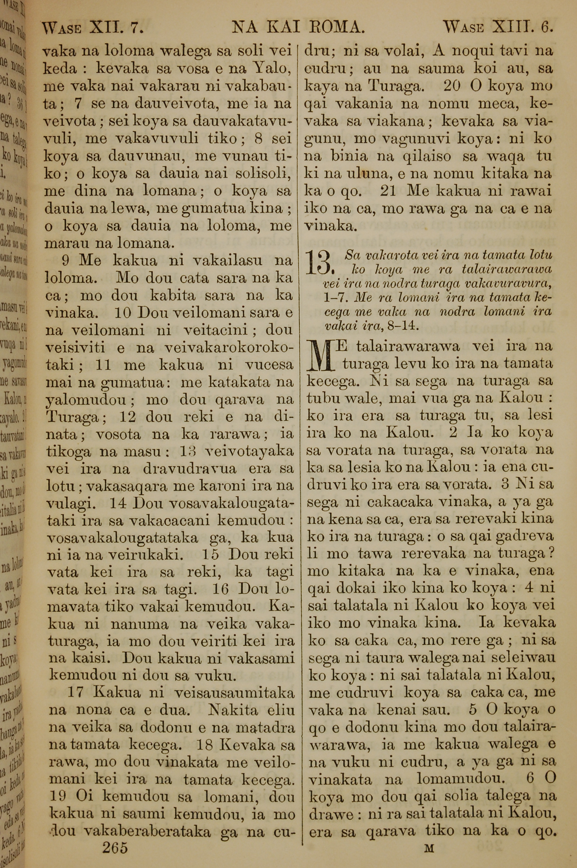 1858年斐濟文新約全書 羅馬書 12 章 7 節到 13 章 6 節