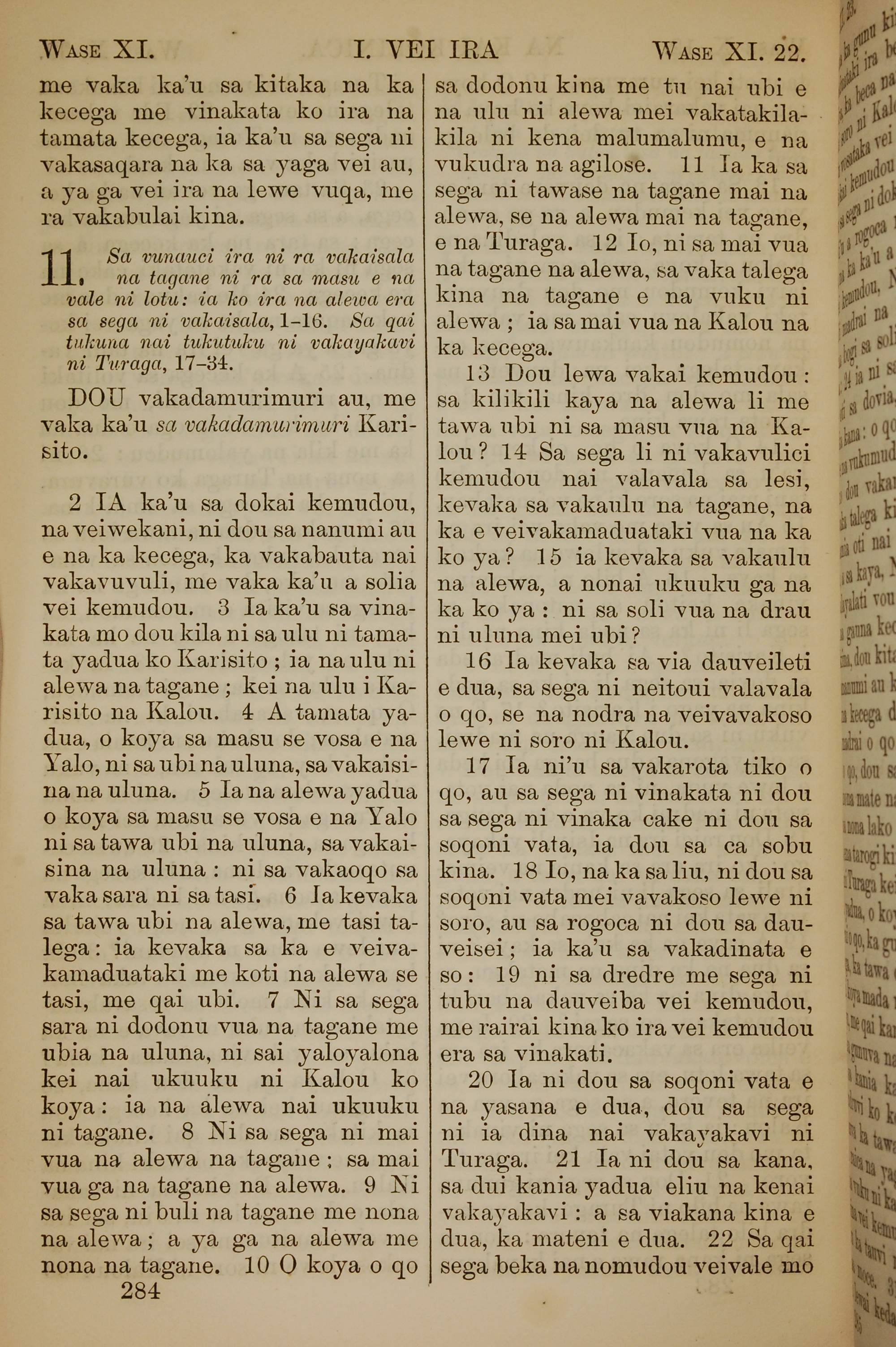 1858年斐濟文新約全書 哥林多前書 11 章 1 節到 11 章 22 節