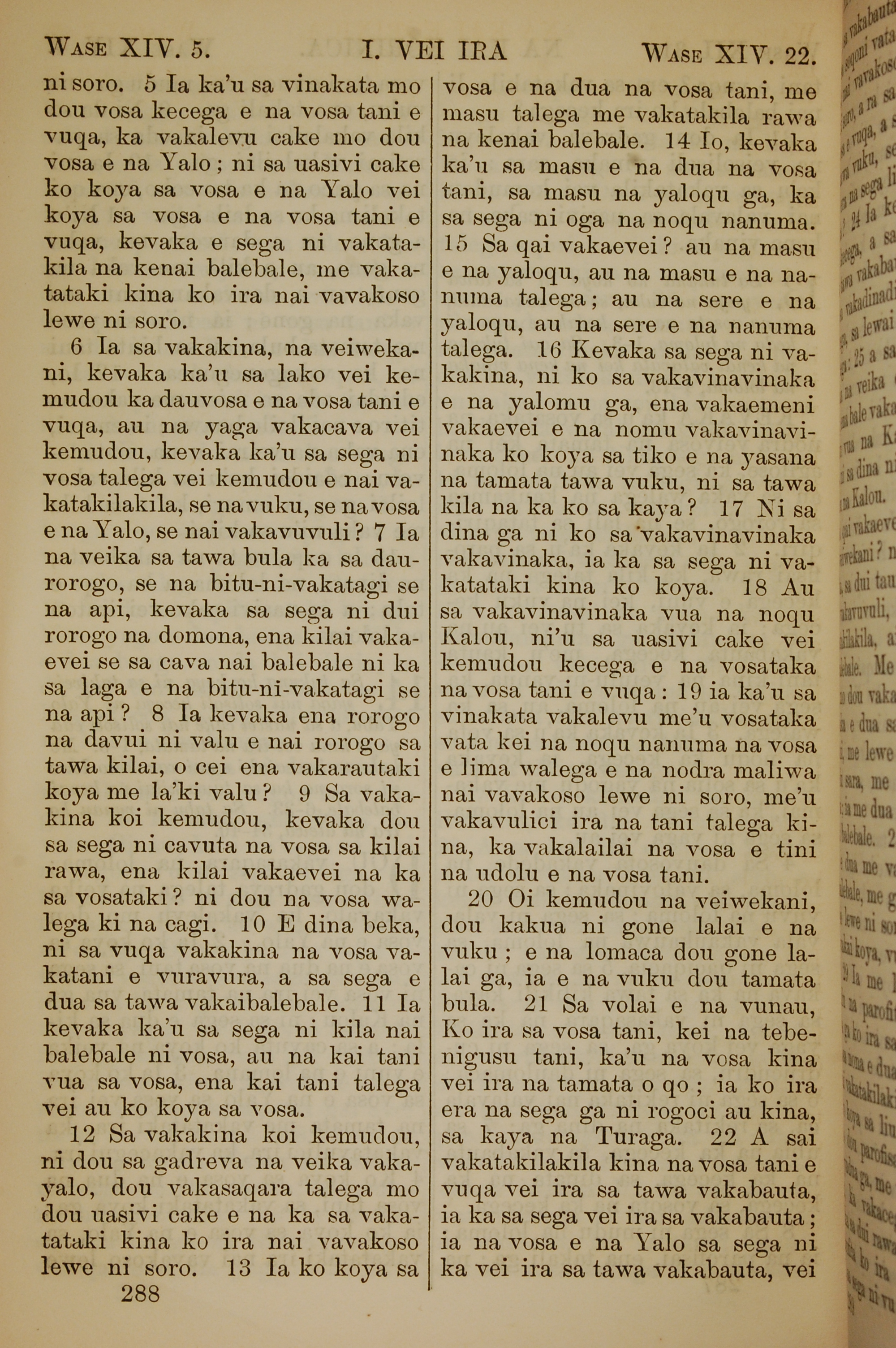 1858年斐濟文新約全書 哥林多前書 14 章 5 節到 14 章 22 節