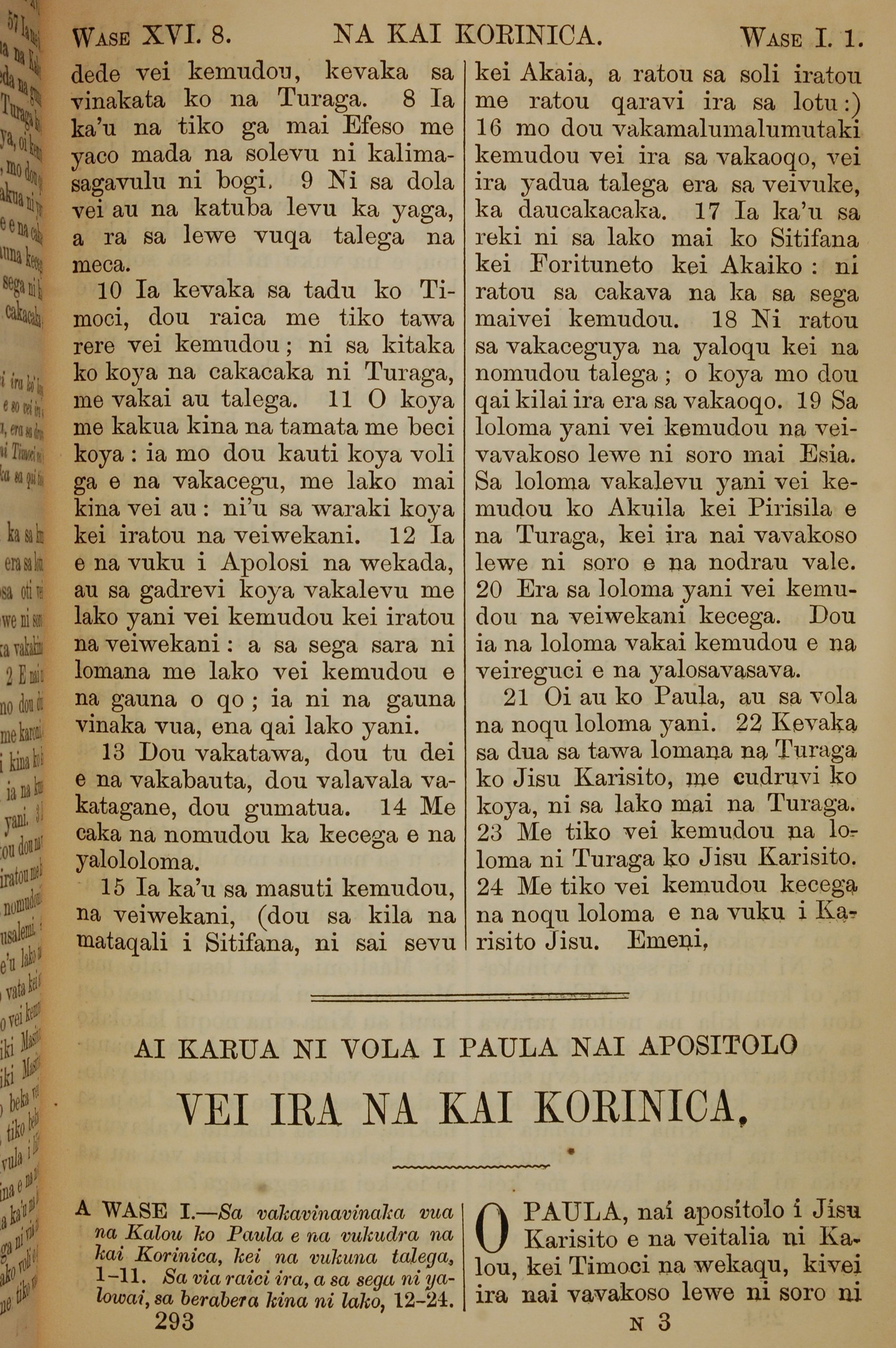1858年斐濟文新約全書 哥林多前書 16 章 8 節到 16 章 24 節