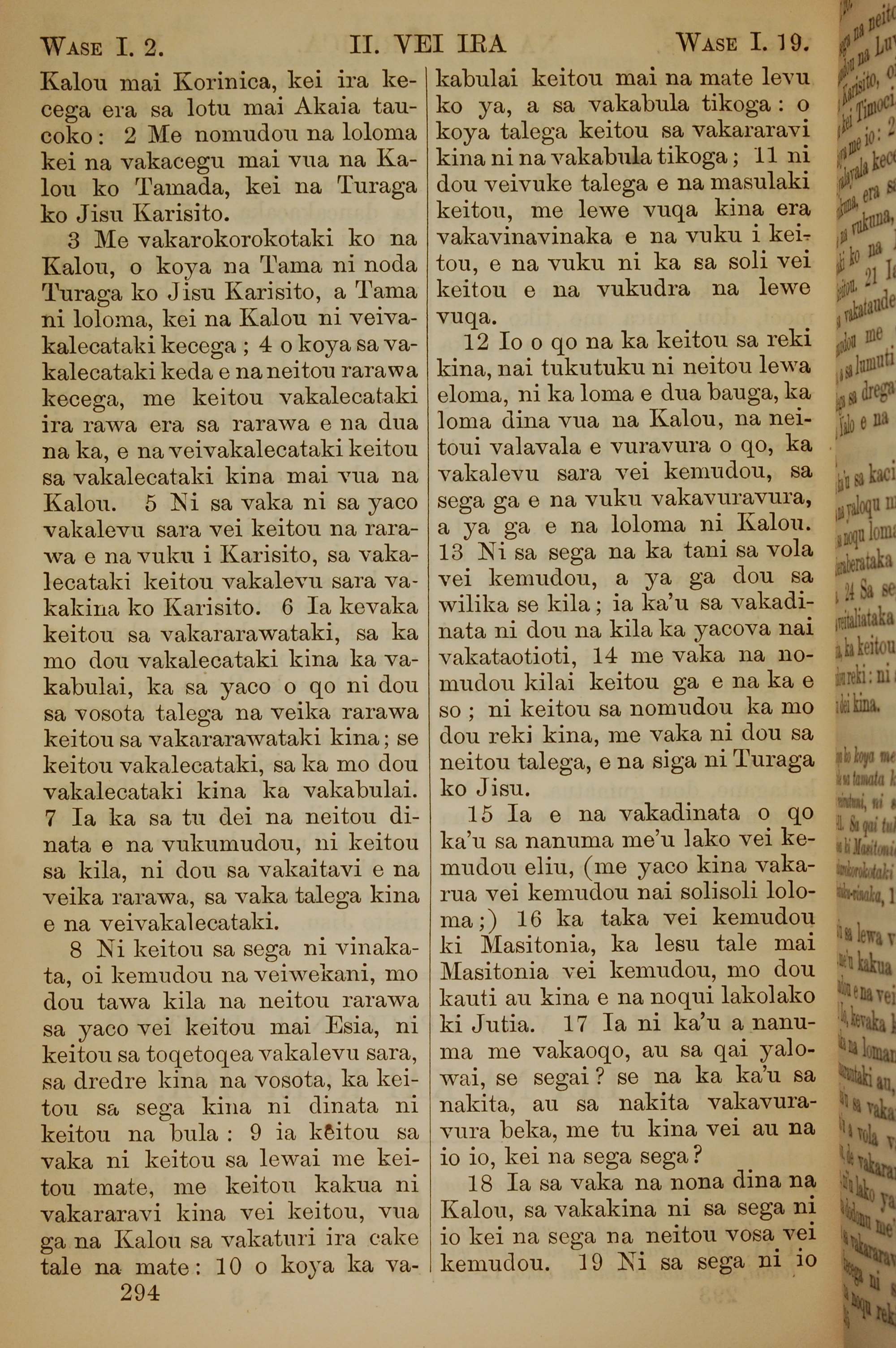 1858年斐濟文新約全書 哥林多後書 1 章 2 節到 1 章 18 節