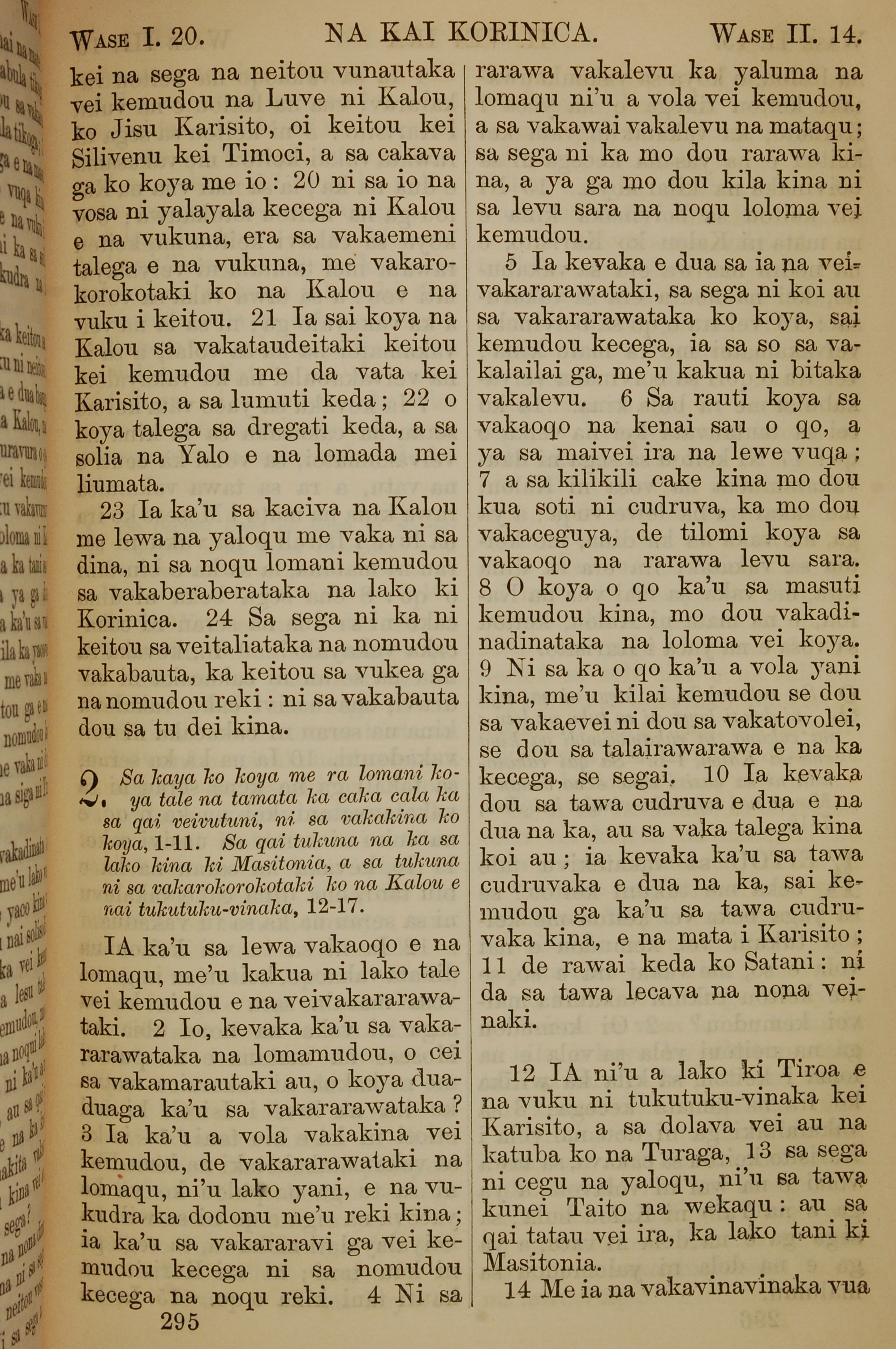 1858年斐濟文新約全書 哥林多後書 1 章 19 節到 2 章 13 節