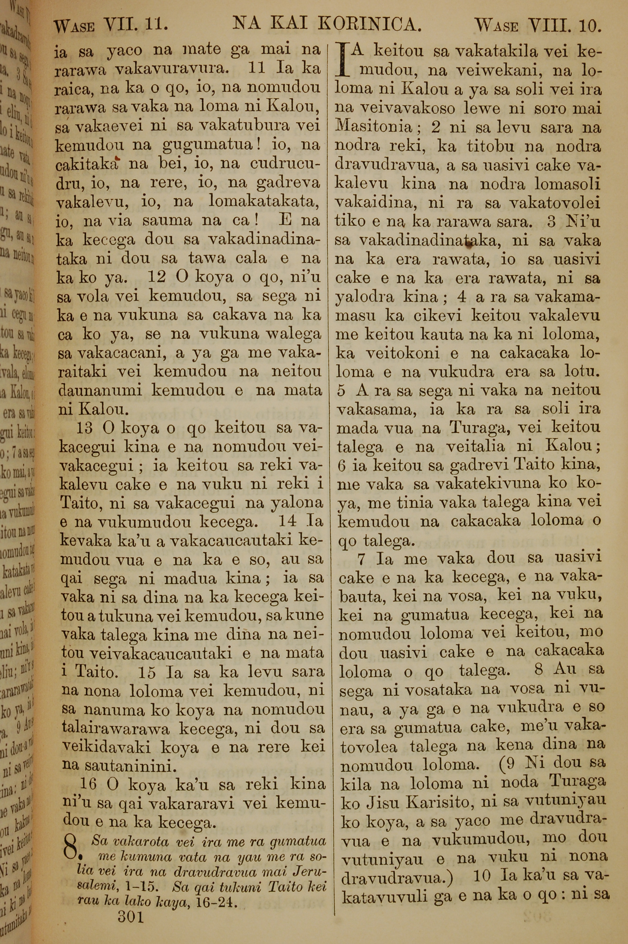 1858年斐濟文新約全書 哥林多後書 7 章 11 節到 8 章 10 節