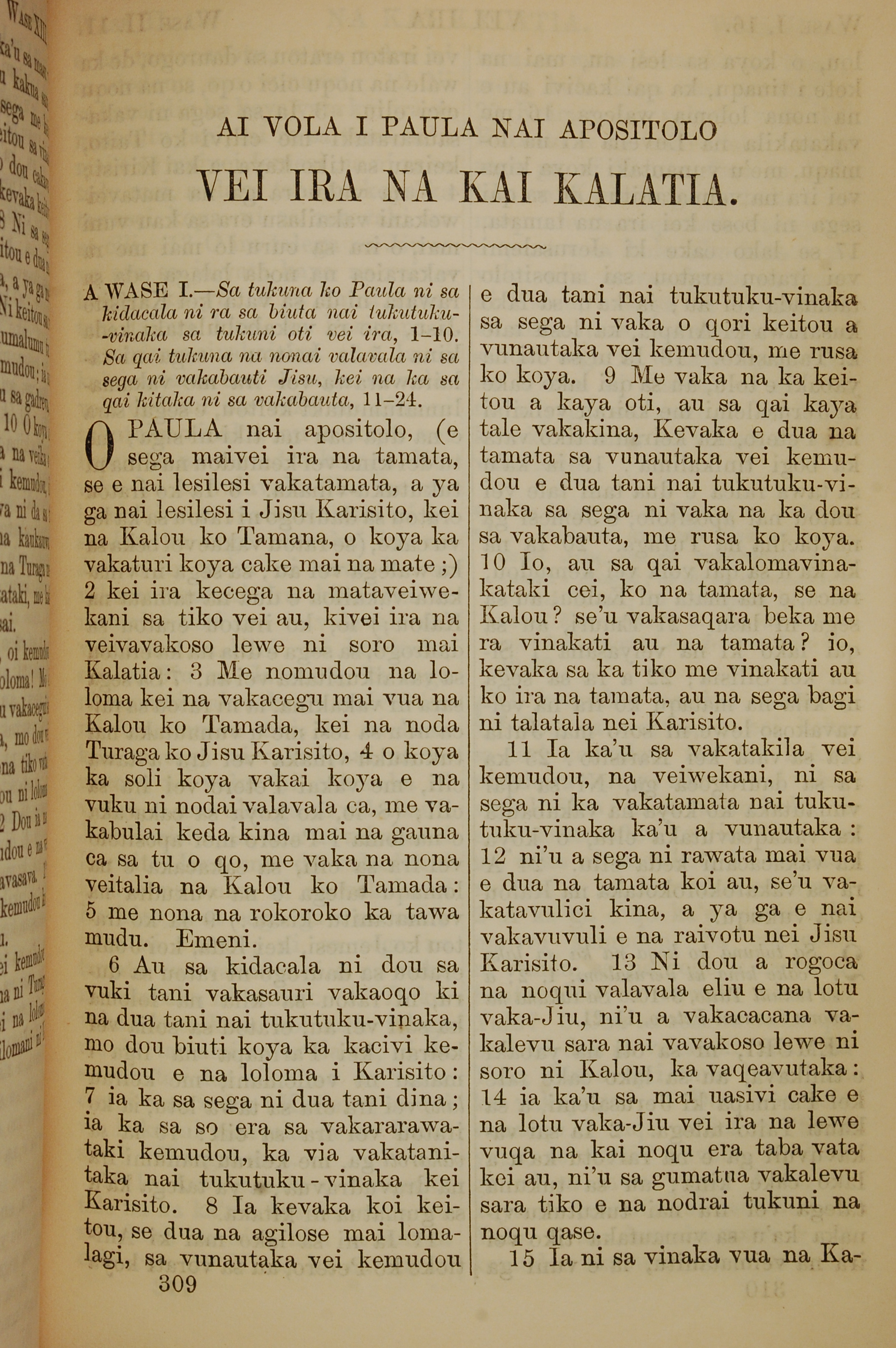 1858年斐濟文新約全書 加拉太書 1 章 1 節到 1 章 15 節