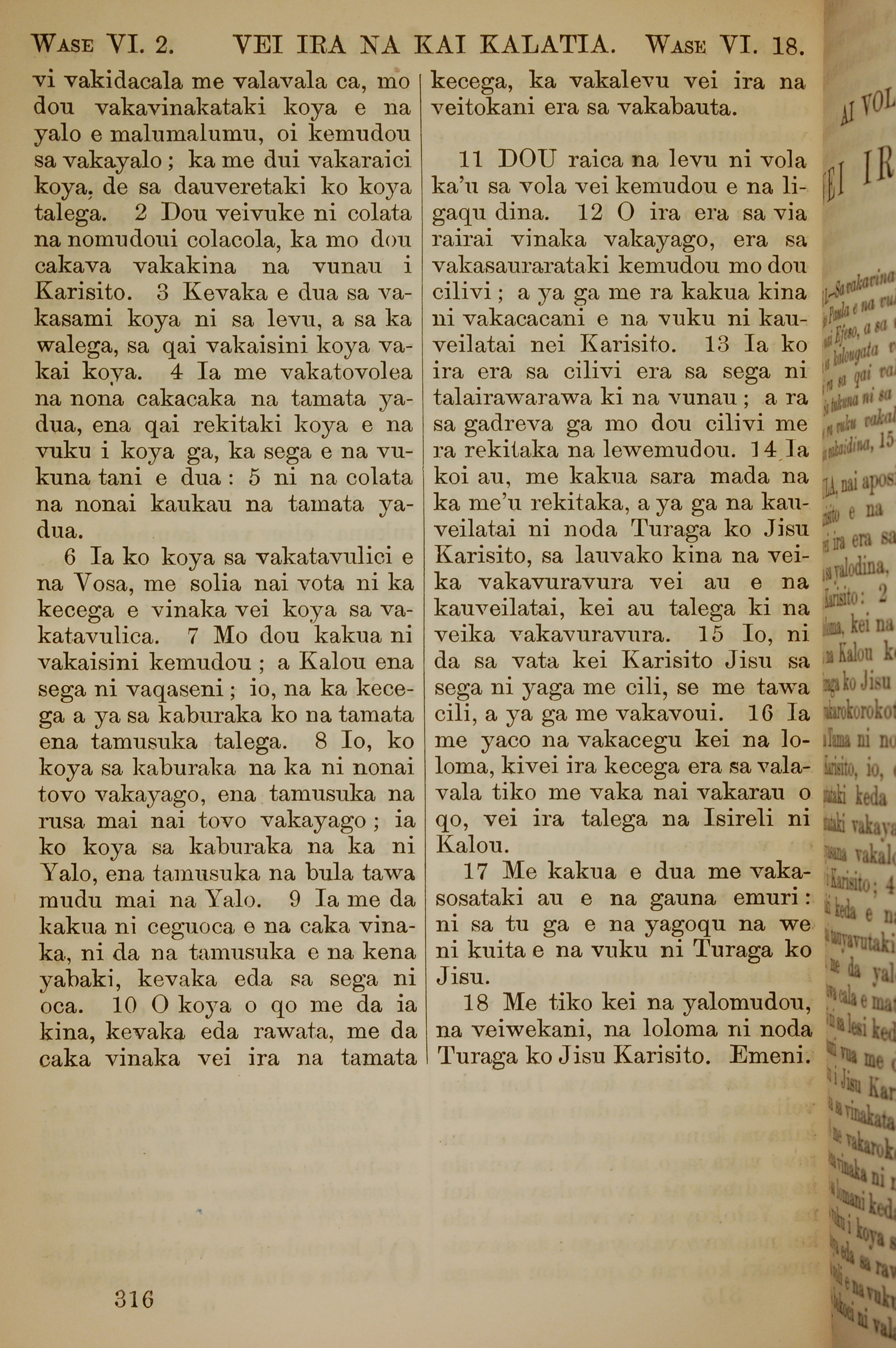 1858年斐濟文新約全書 加拉太書 6 章 2 節到 6 章 18 節