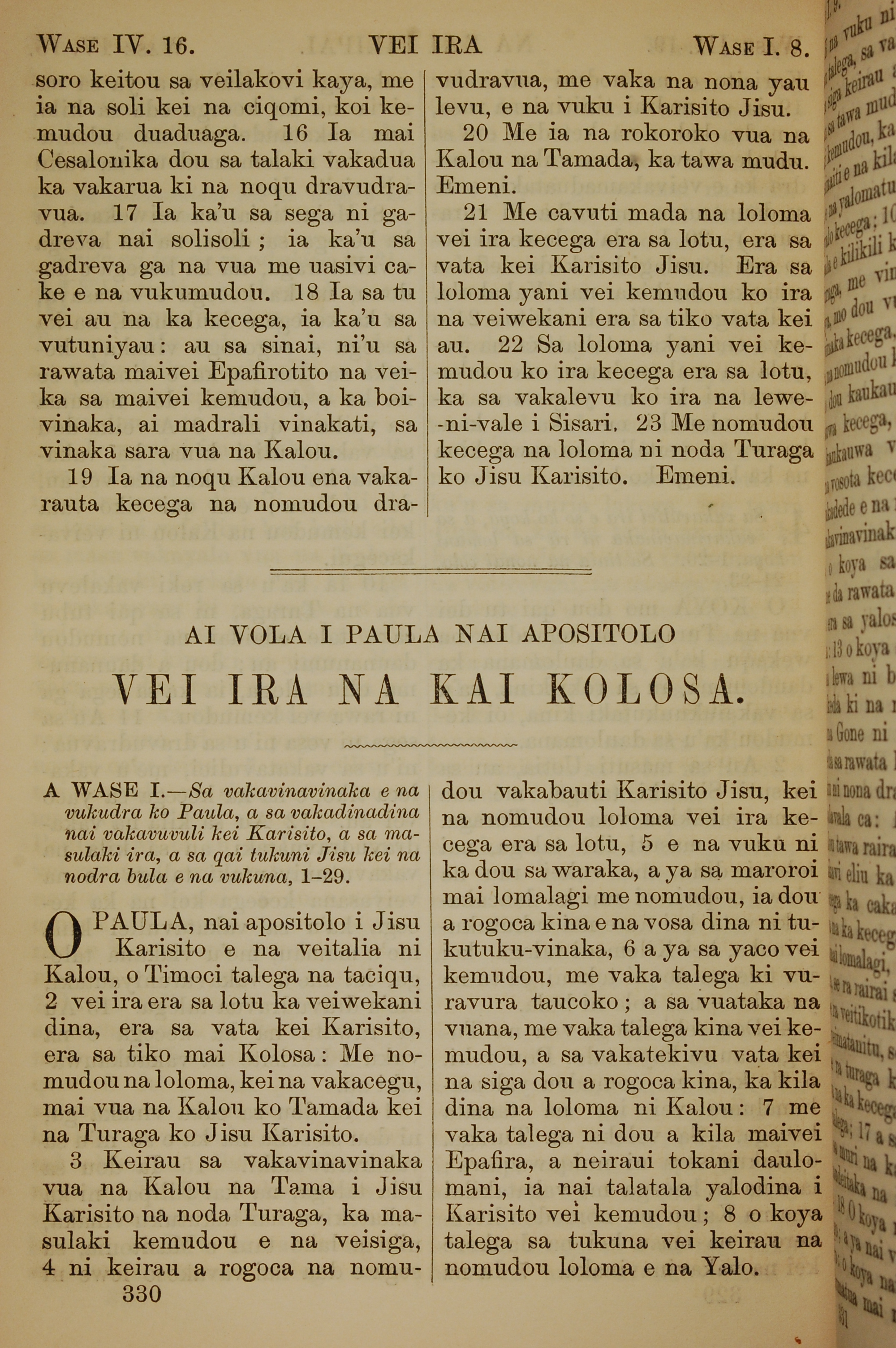 1858年斐濟文新約全書 歌羅西書 1 章 1 節到 1 章 8 節