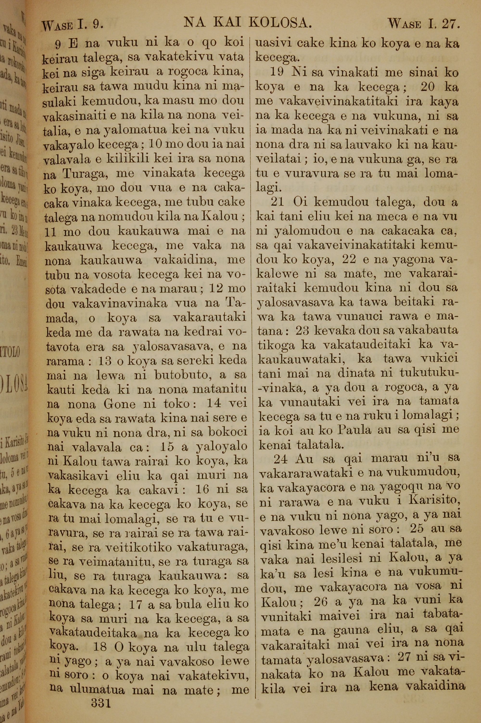 1858年斐濟文新約全書 歌羅西書 1 章 9 節到 1 章 27 節
