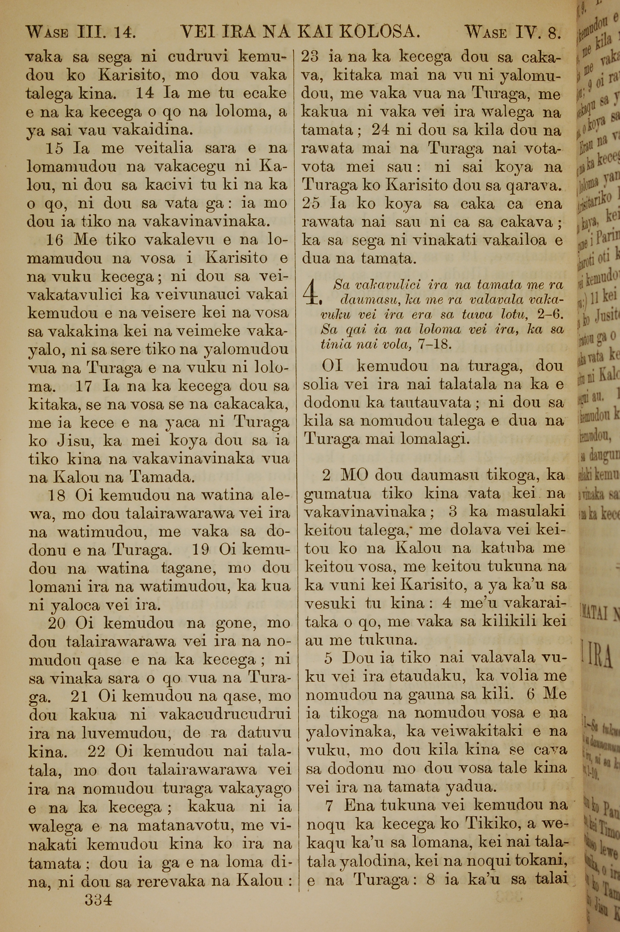 1858年斐濟文新約全書 歌羅西書 3 章 14 節到 4 章 8 節