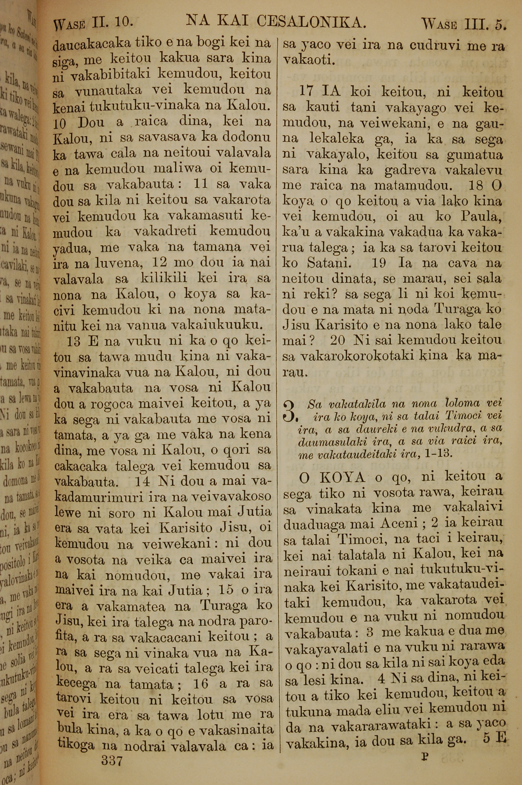 1858年斐濟文新約全書 帖撒羅尼迦前書 2 章 10 節到 3 章 5 節
