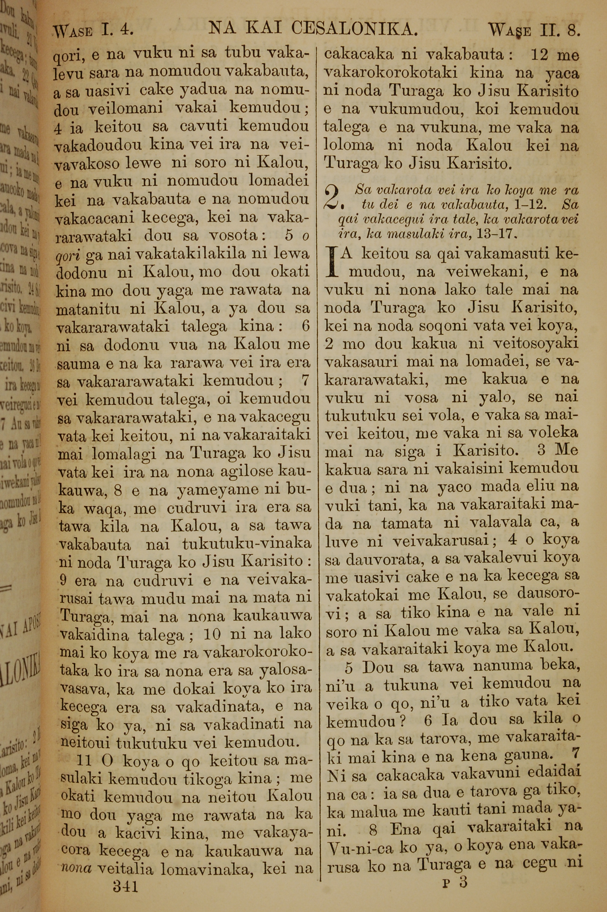 1858年斐濟文新約全書 帖撒羅尼迦後書 1 章 4 節到 2 章 8 節