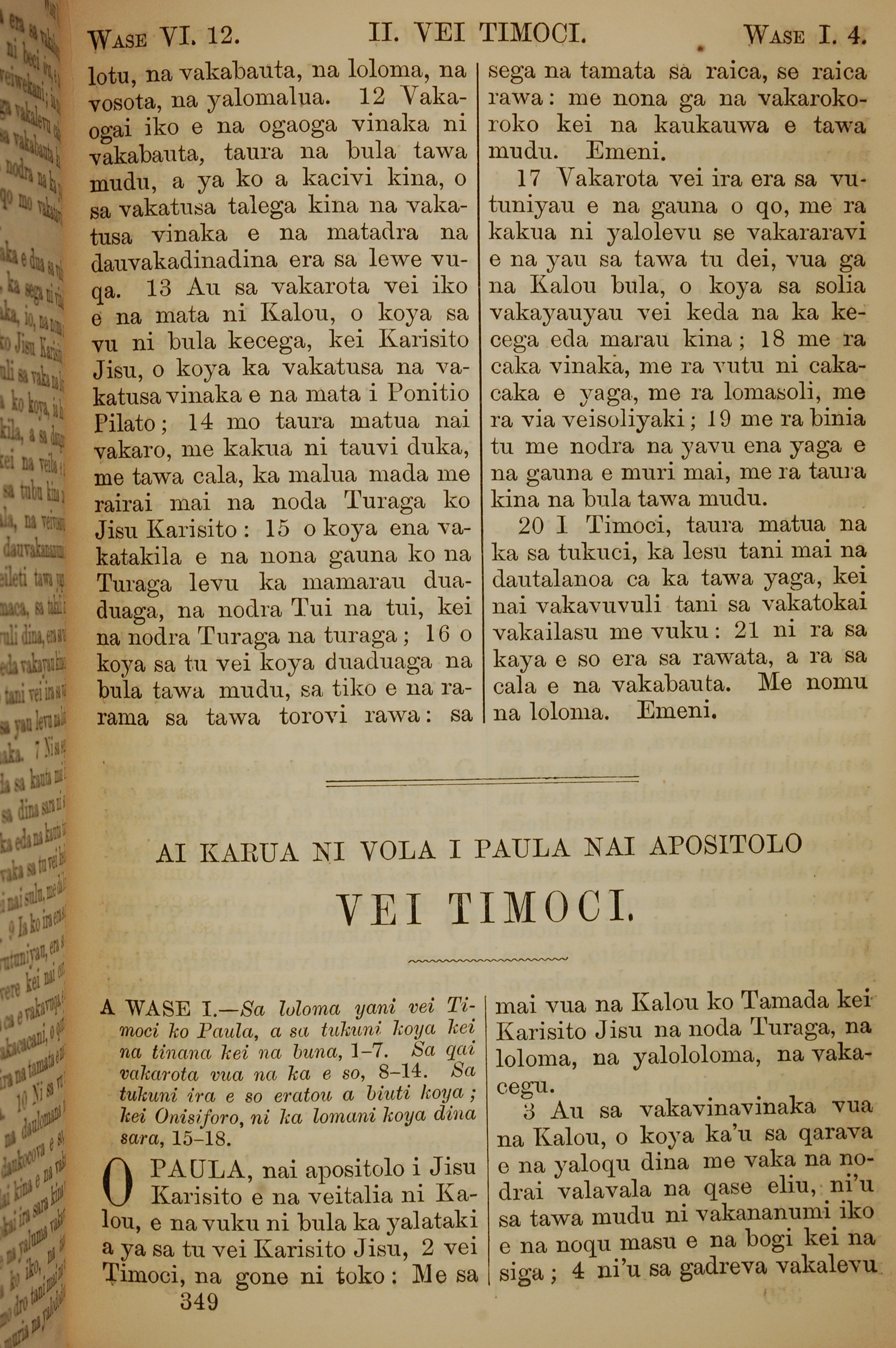 1858年斐濟文新約全書 提摩太前書 6 章 12 節到 6 章 21 節