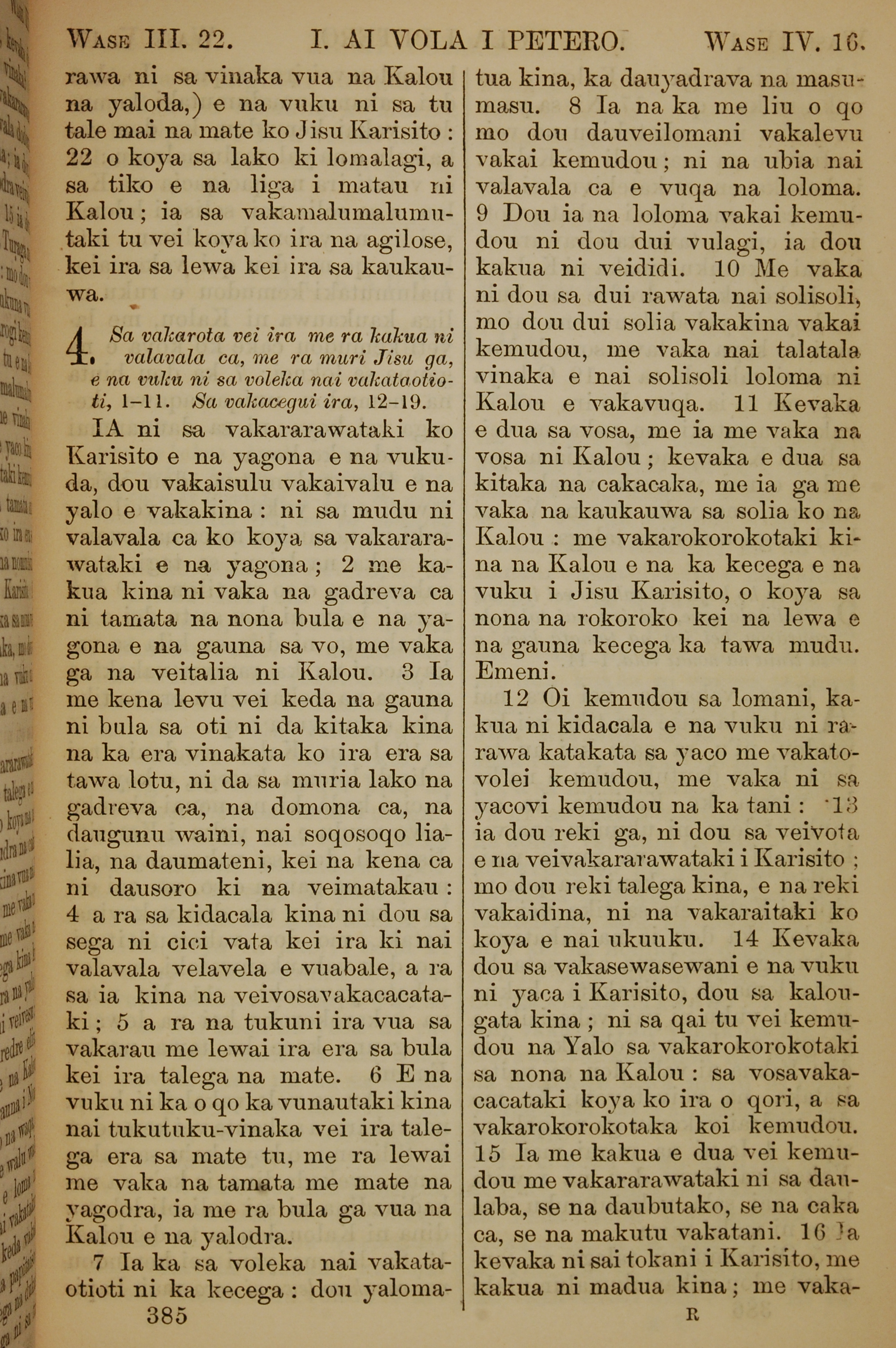 1858年斐濟文新約全書 彼得前書 3 章 22 節到 4 章 16 節