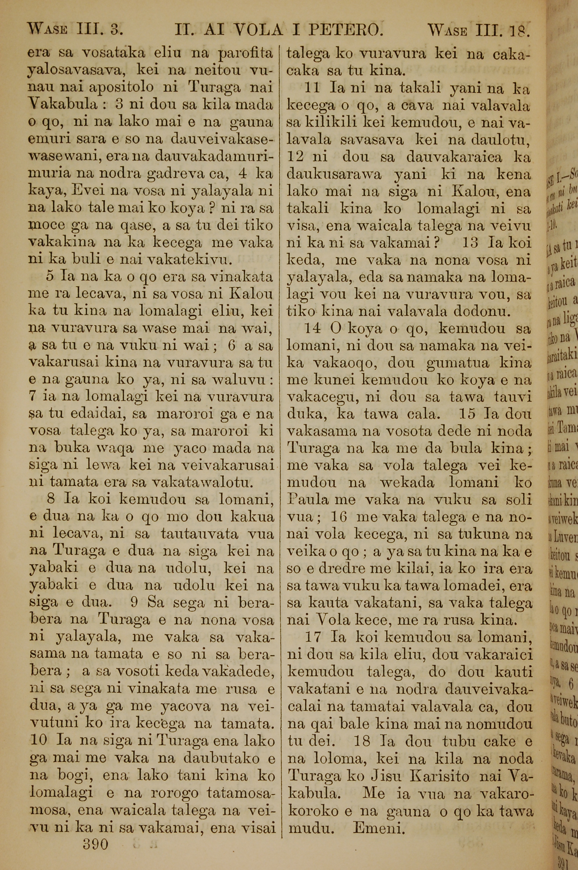 1858年斐濟文新約全書 彼得後書 3 章 3 節到 3 章 18 節