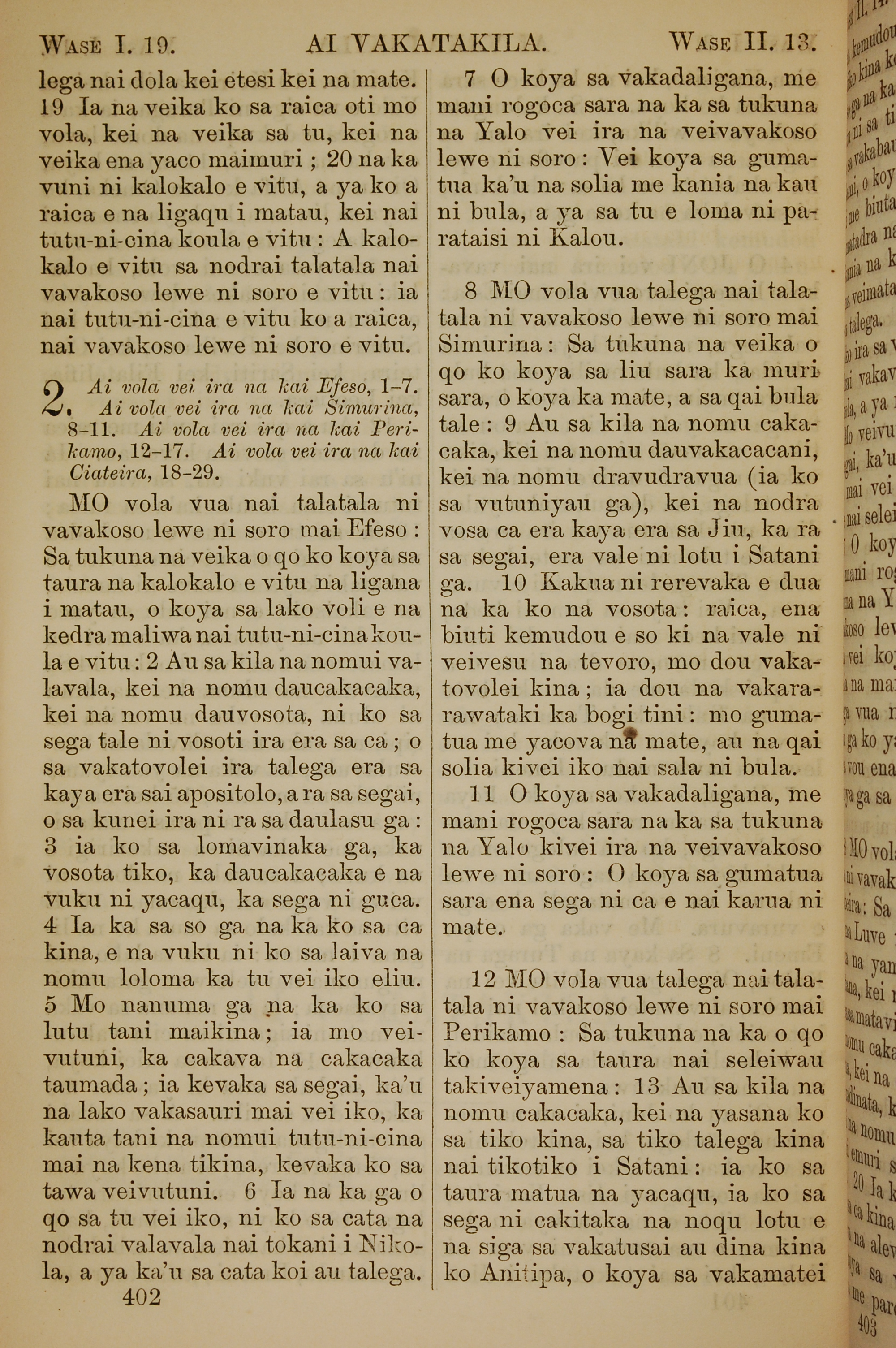 1858年斐濟文新約全書 啟示錄 1 章 19 節到 2 章 13 節
