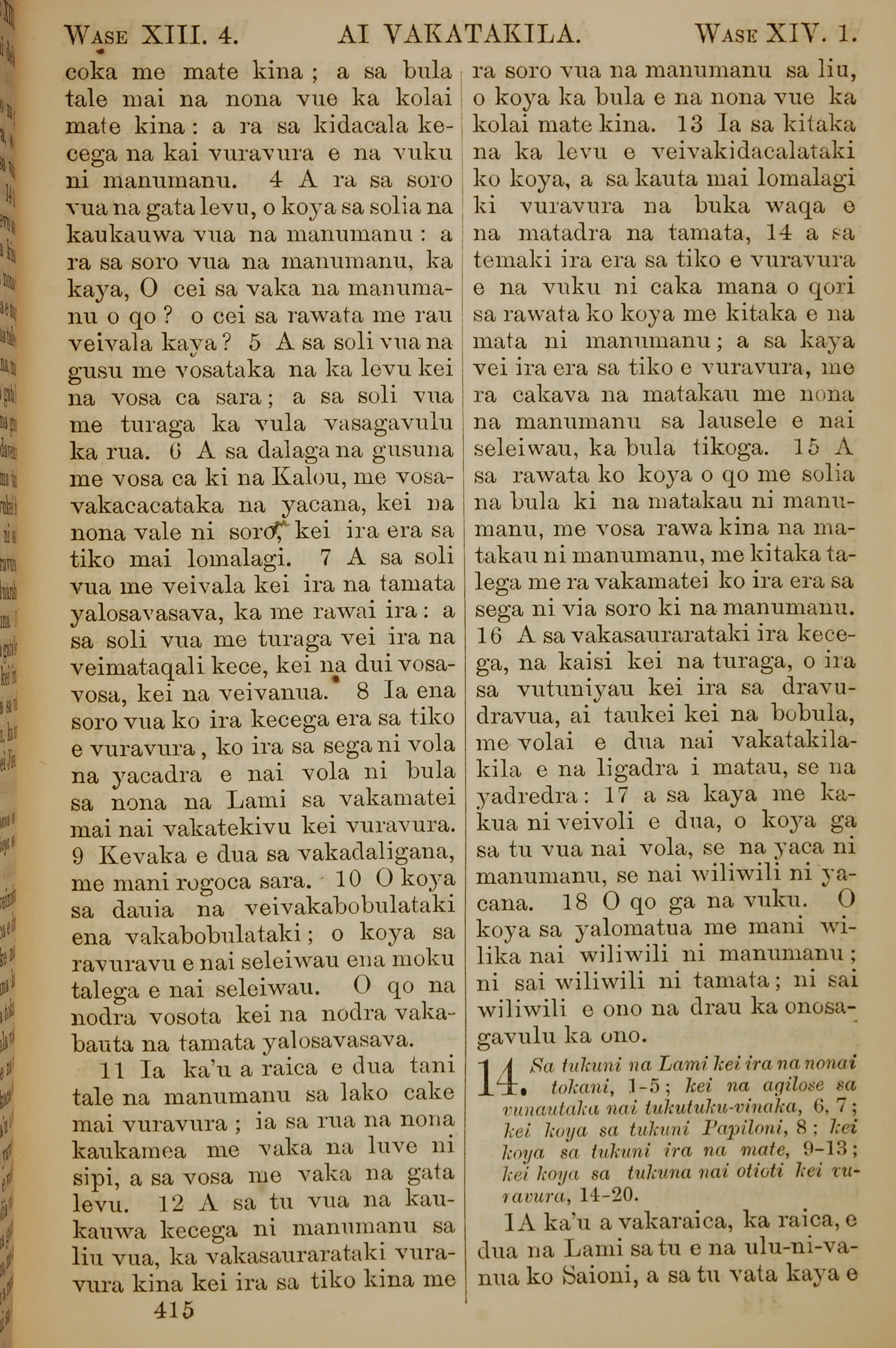 1858年斐濟文新約全書 啟示錄 13 章 4 節到 14 章 1 節