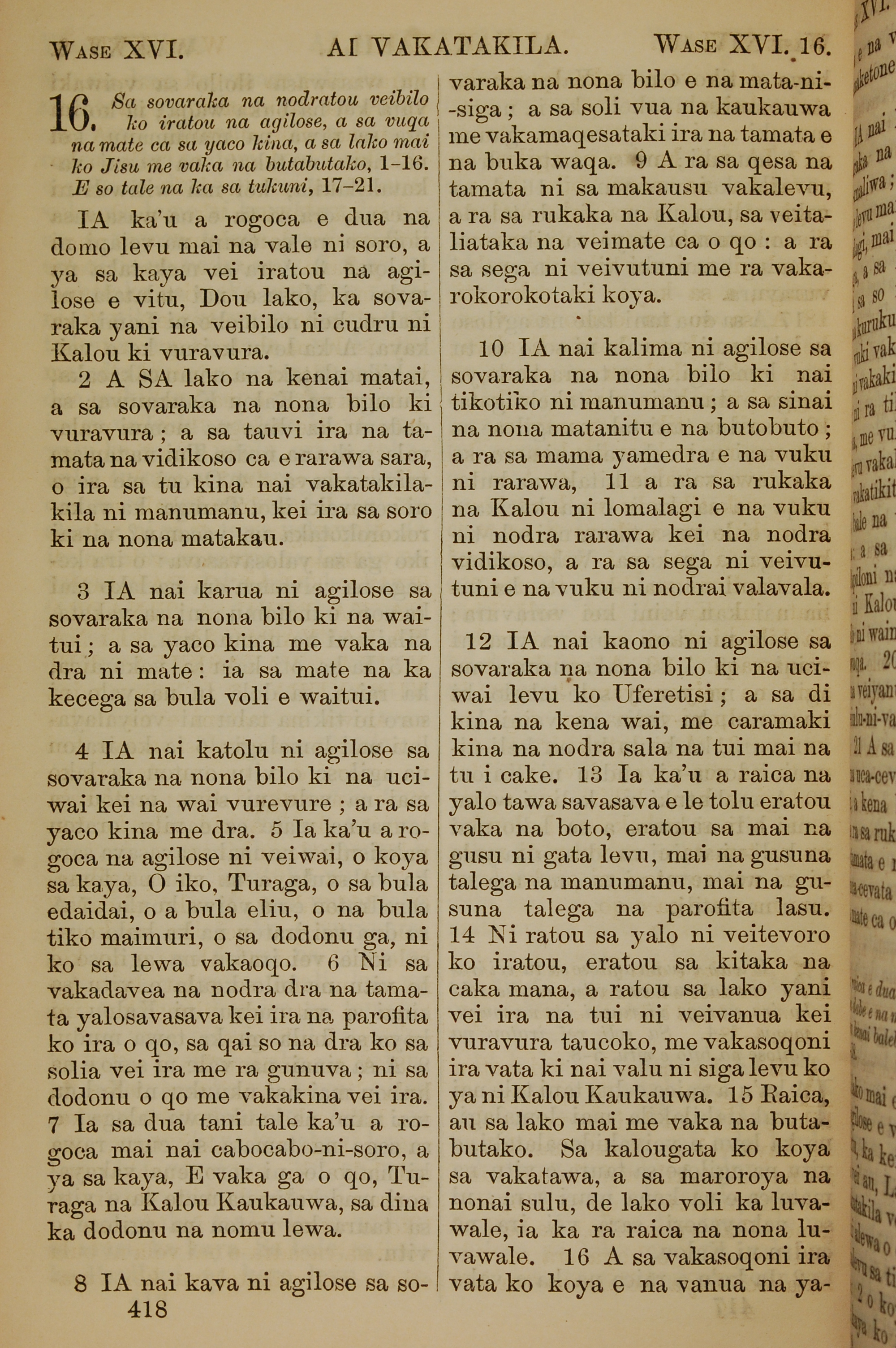 1858年斐濟文新約全書 啟示錄 16 章 1 節到 16 章 16 節