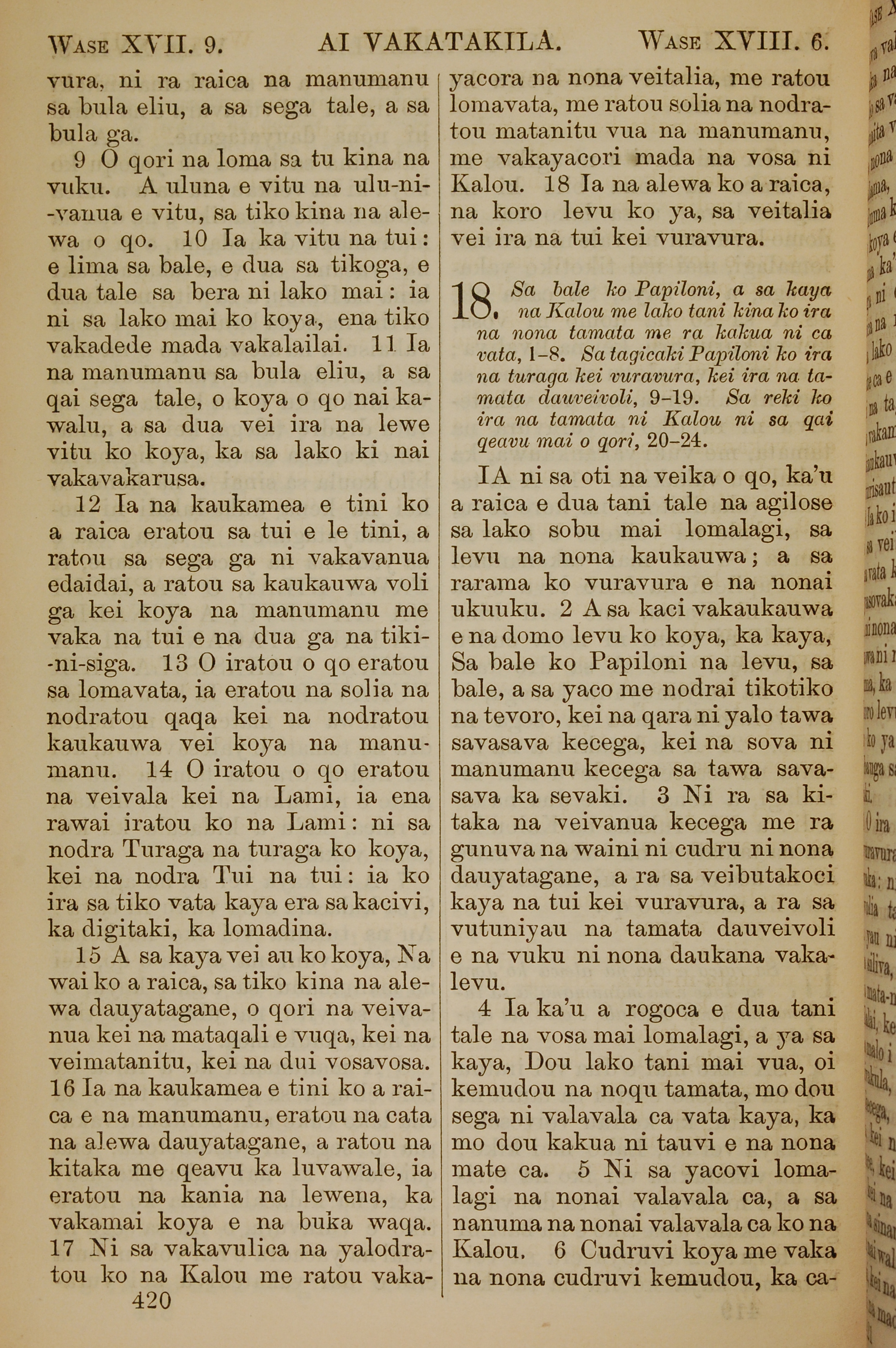 1858年斐濟文新約全書 啟示錄 17 章 9 節到 18 章 6 節