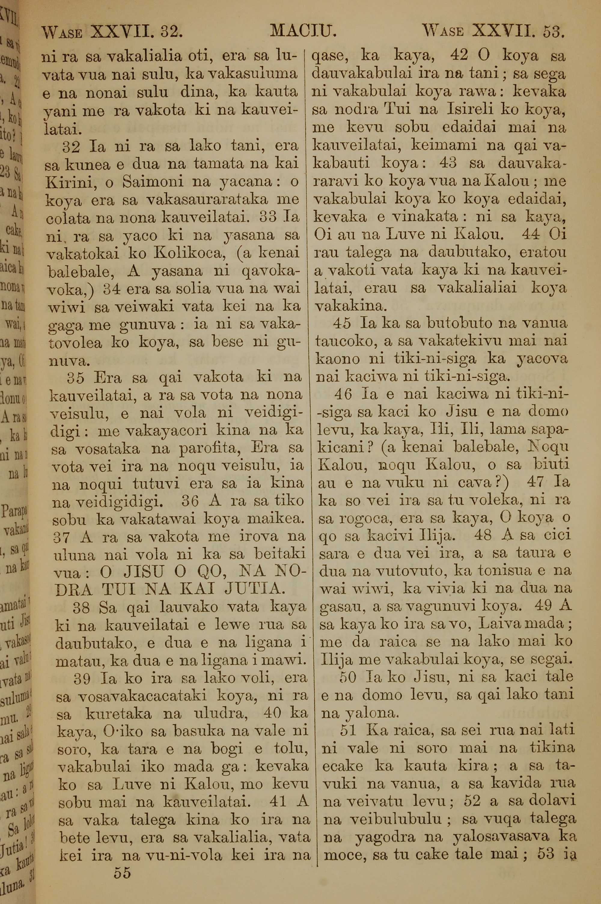 1858年斐濟文新約全書 馬太福音 27 章 32 節到 27 章 53 節