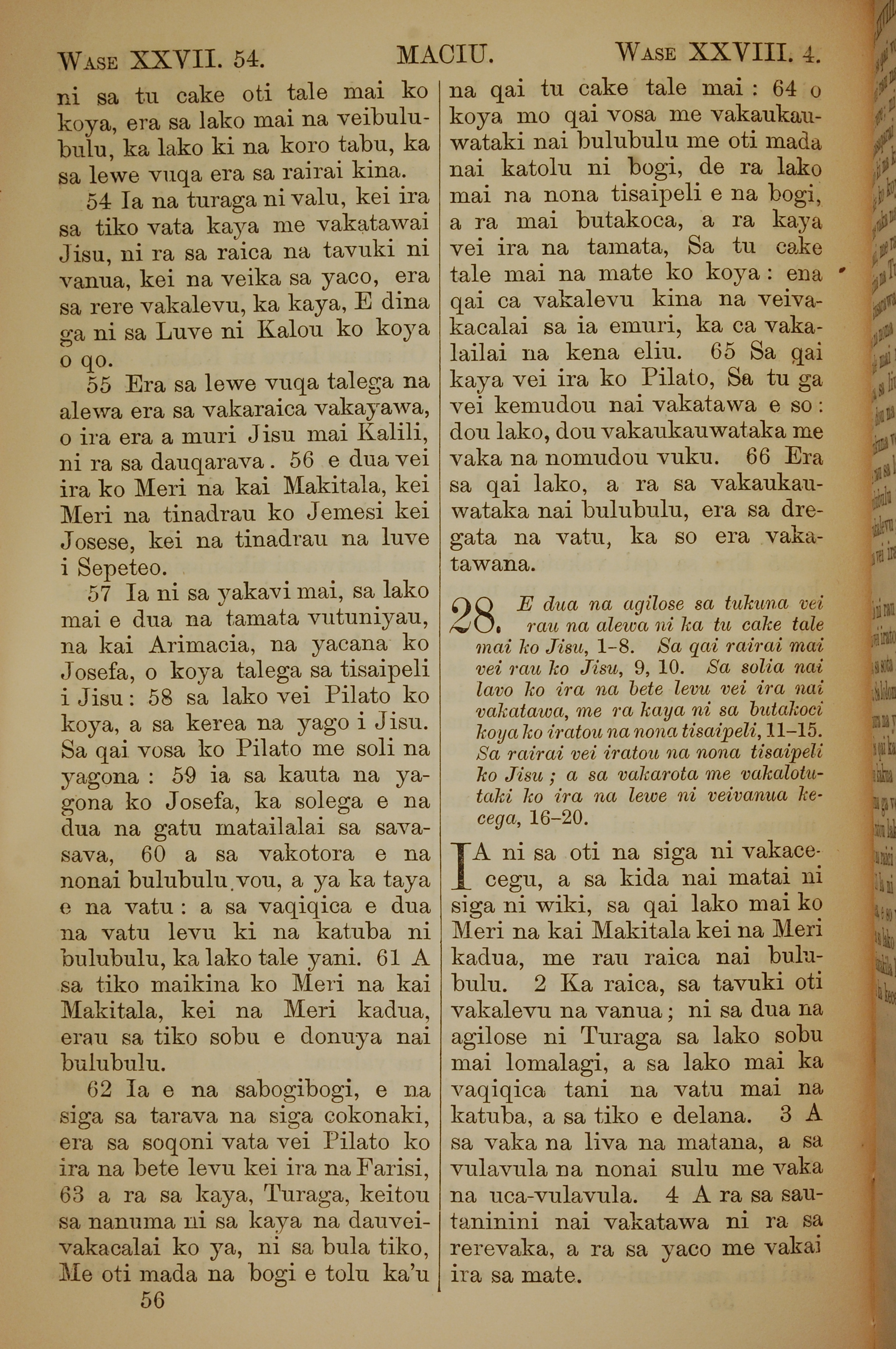 1858年斐濟文新約全書 馬太福音 27 章 54 節到 28 章 4 節