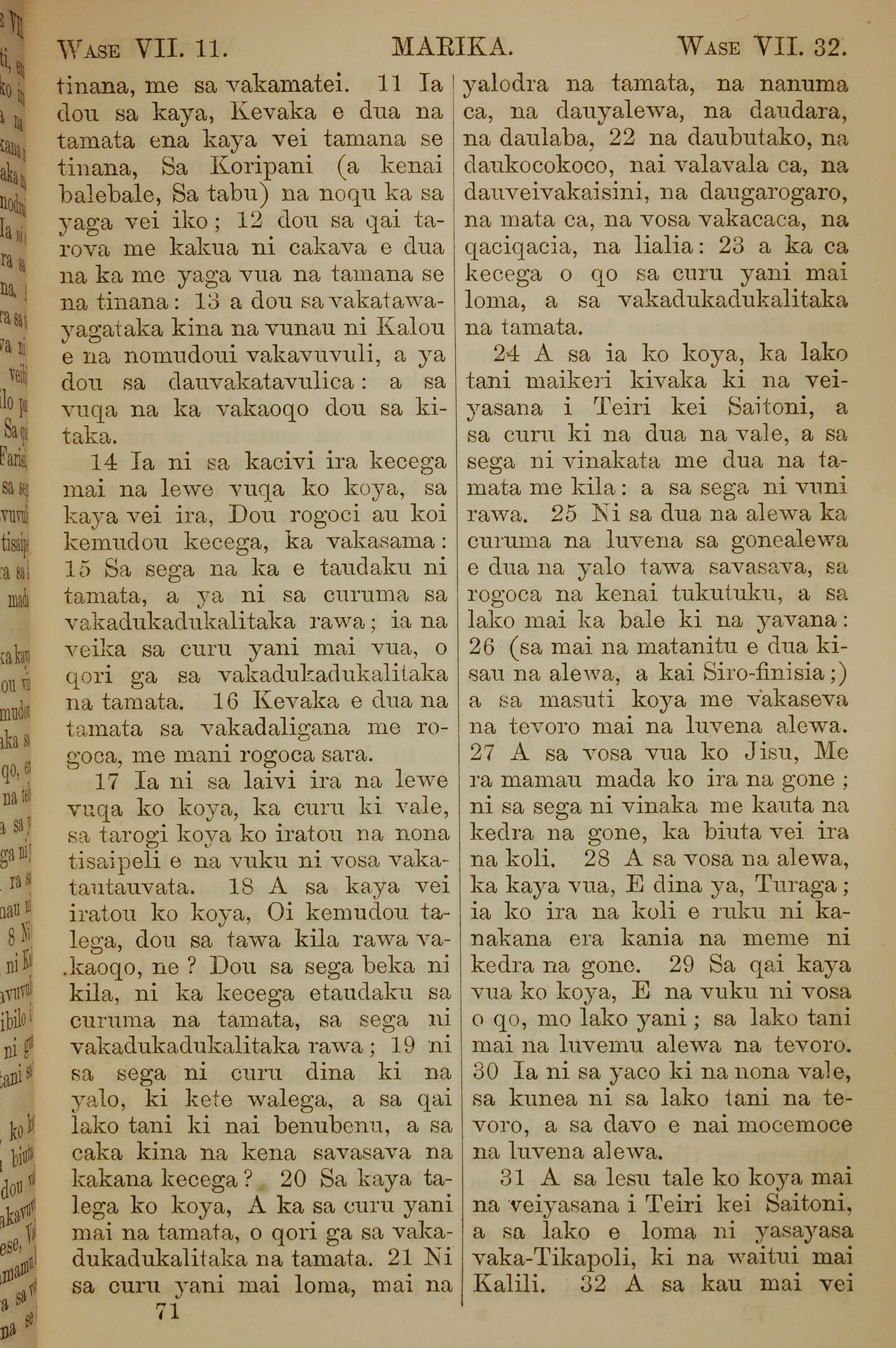 1858年斐濟文新約全書 馬可福音 7 章 11 節到 7 章 32 節