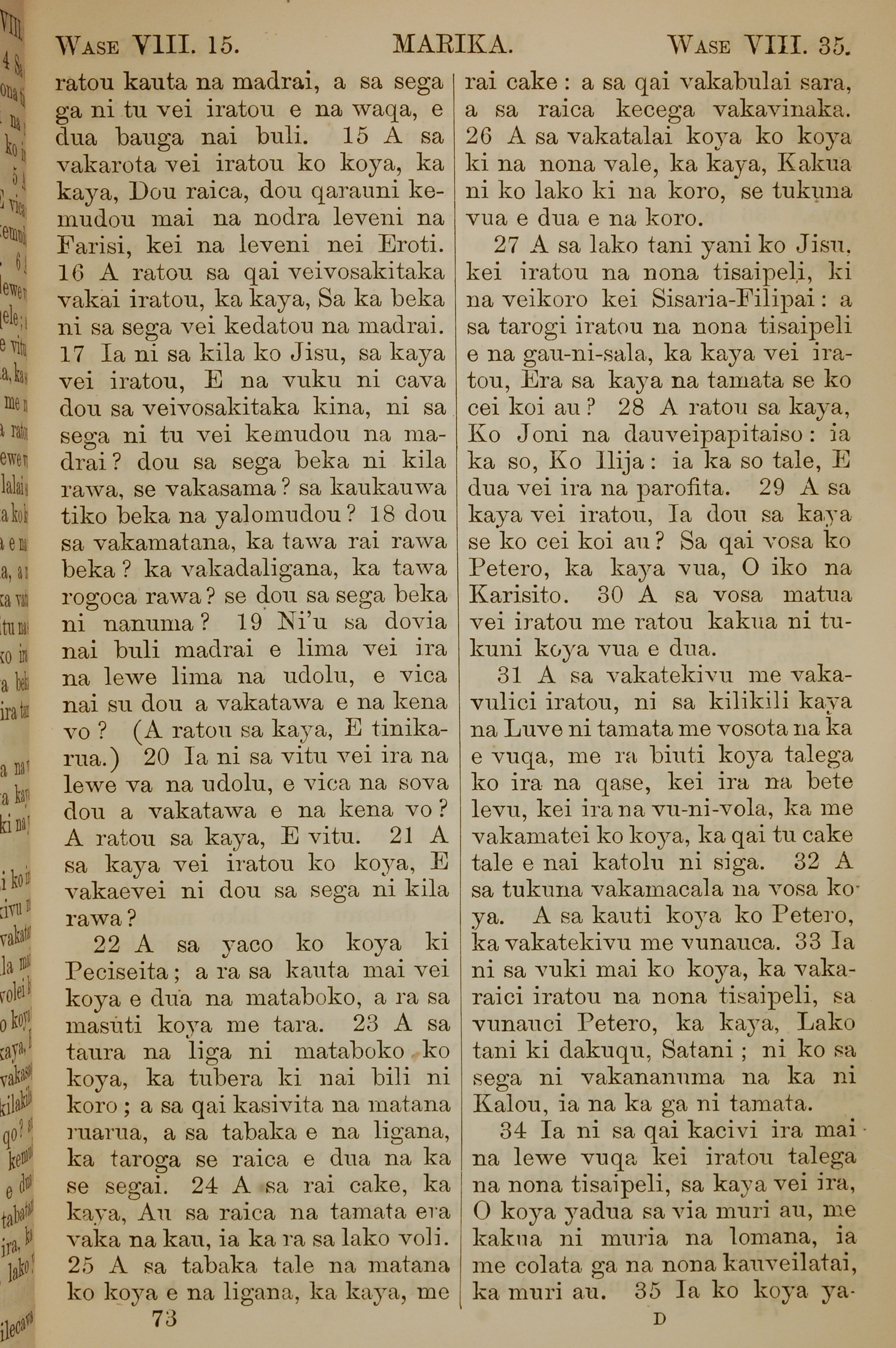 1858年斐濟文新約全書 馬可福音 8 章 15 節到 8 章 35 節