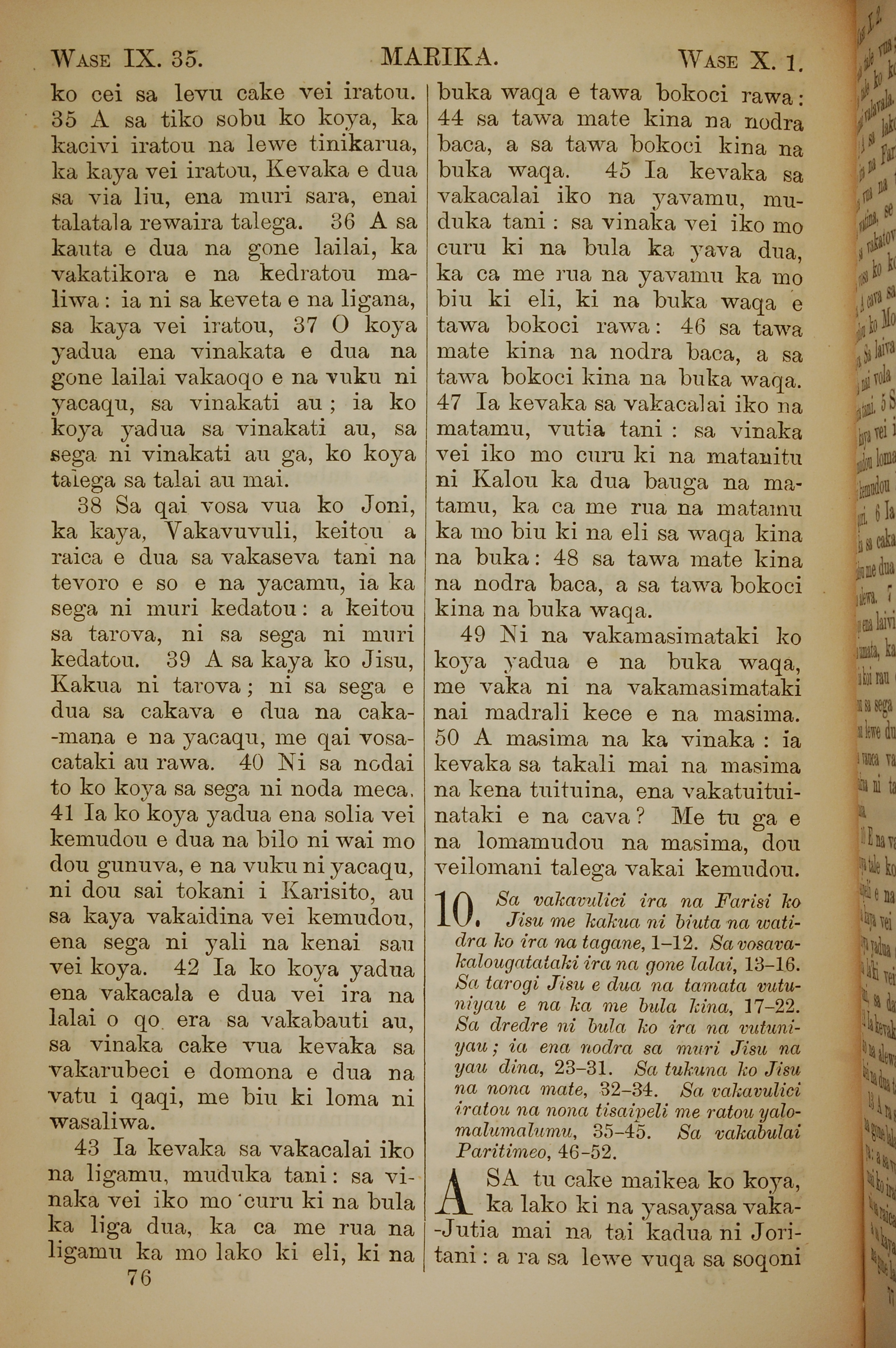 1858年斐濟文新約全書 馬可福音 9 章 35 節到 10 章 1 節