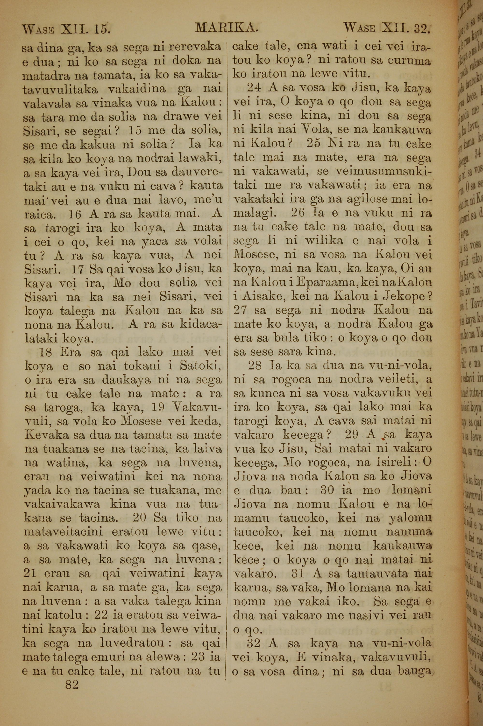 1858年斐濟文新約全書 馬可福音 12 章 15 節到 12 章 32 節