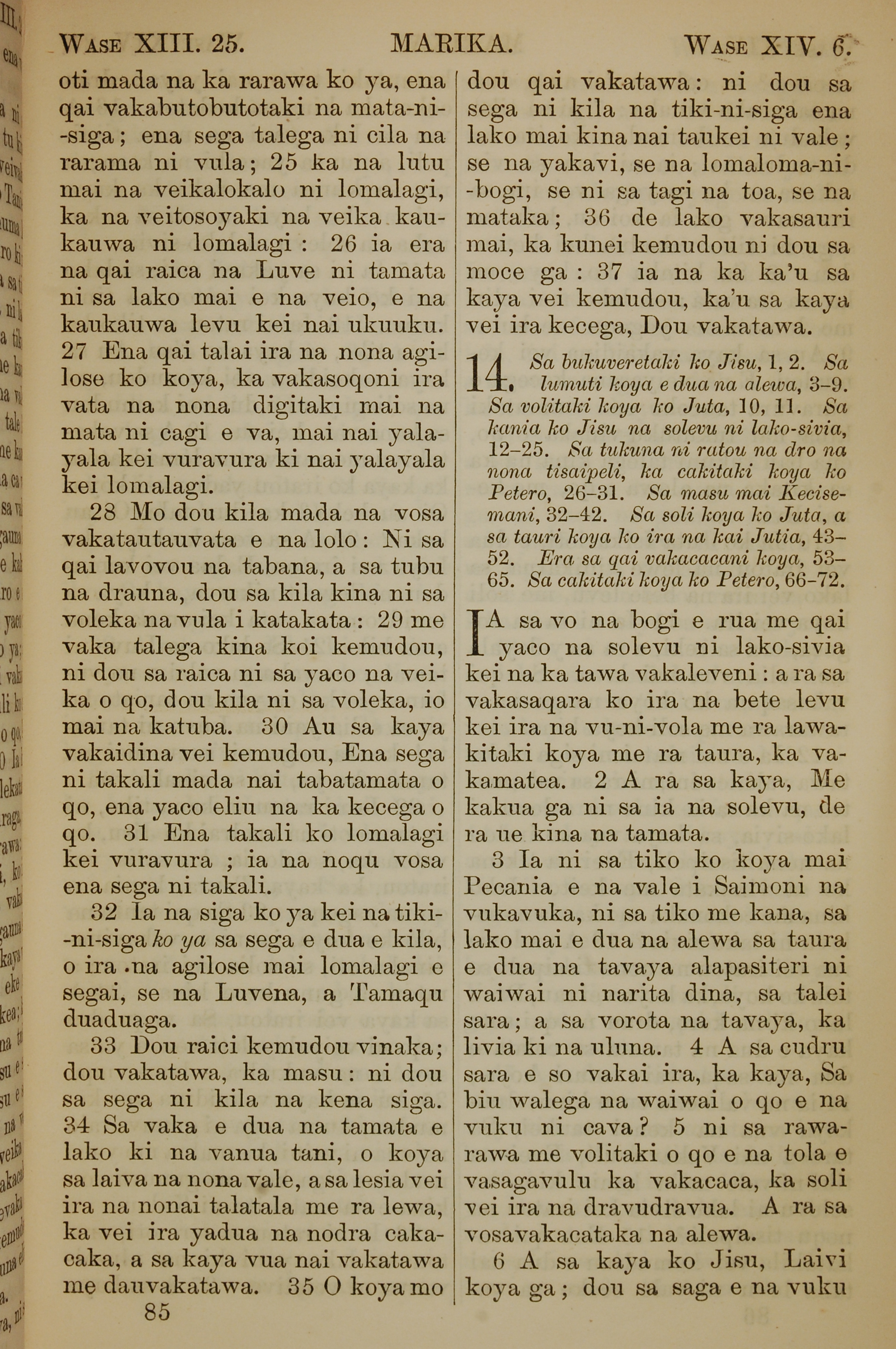 1858年斐濟文新約全書 馬可福音 13 章 25 節到 14 章 6 節