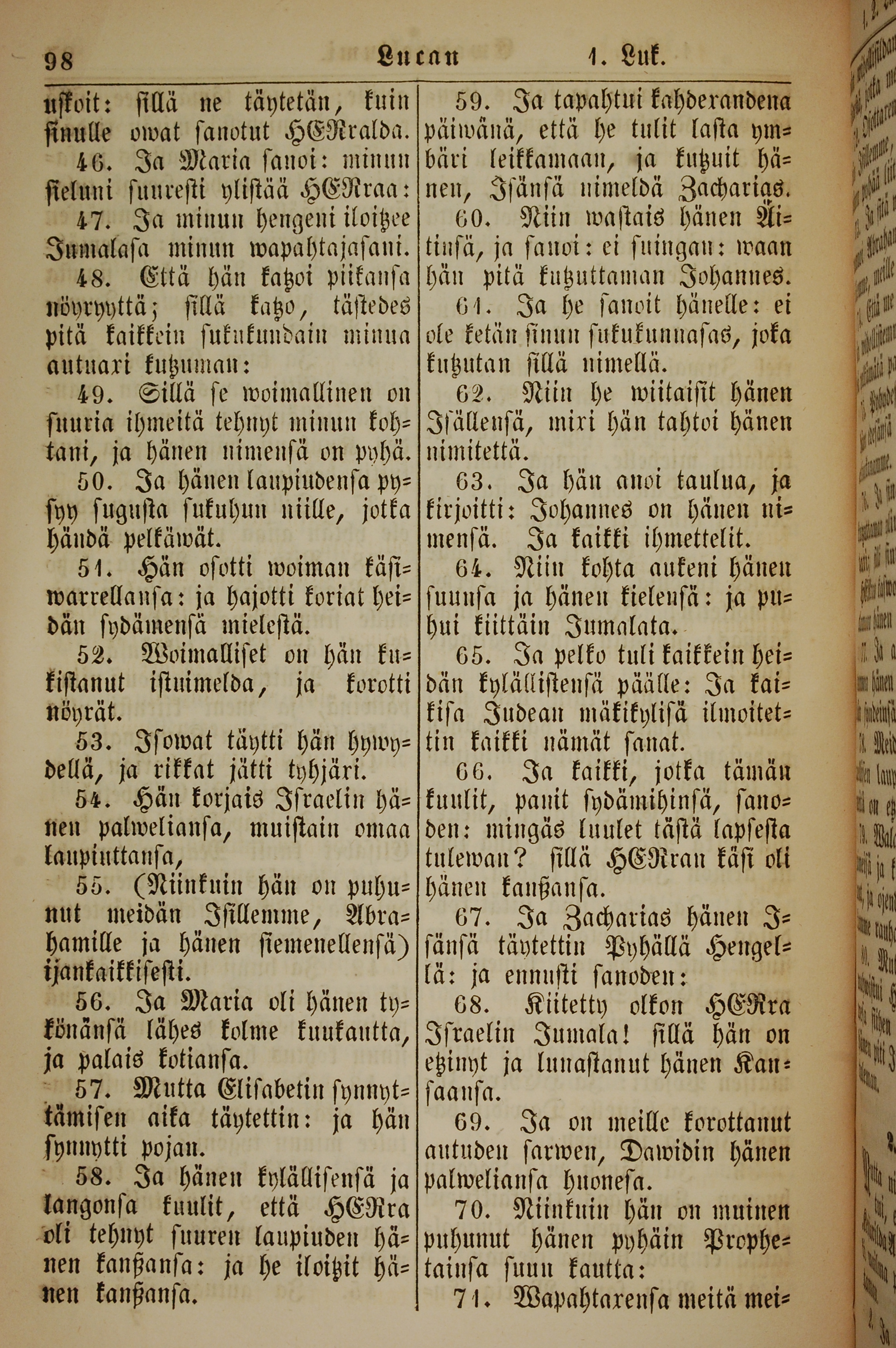 1861年新約全書 路加福音 1 章 46 節到 1 章 71 節