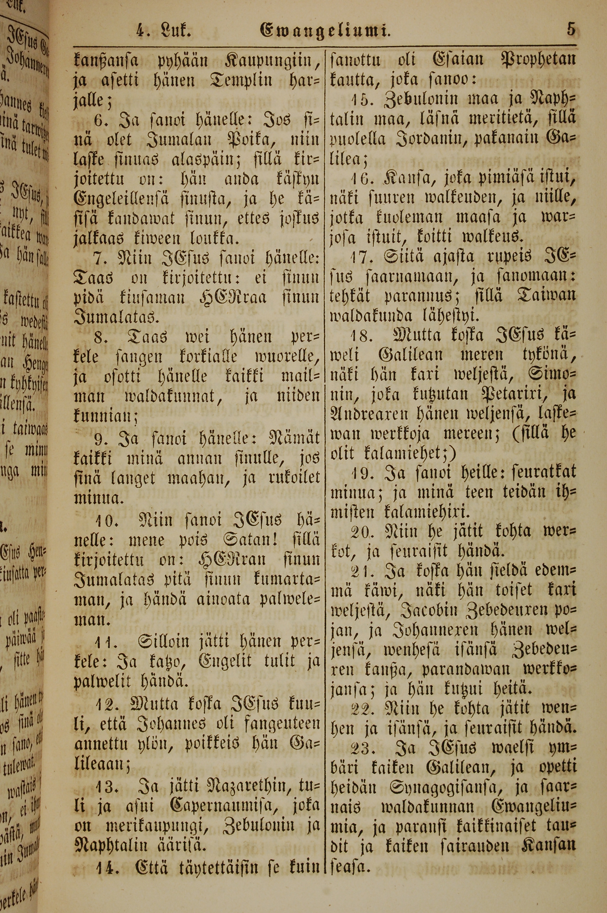 1861年新約全書 馬太福音 4 章 6 節到 4 章 23 節