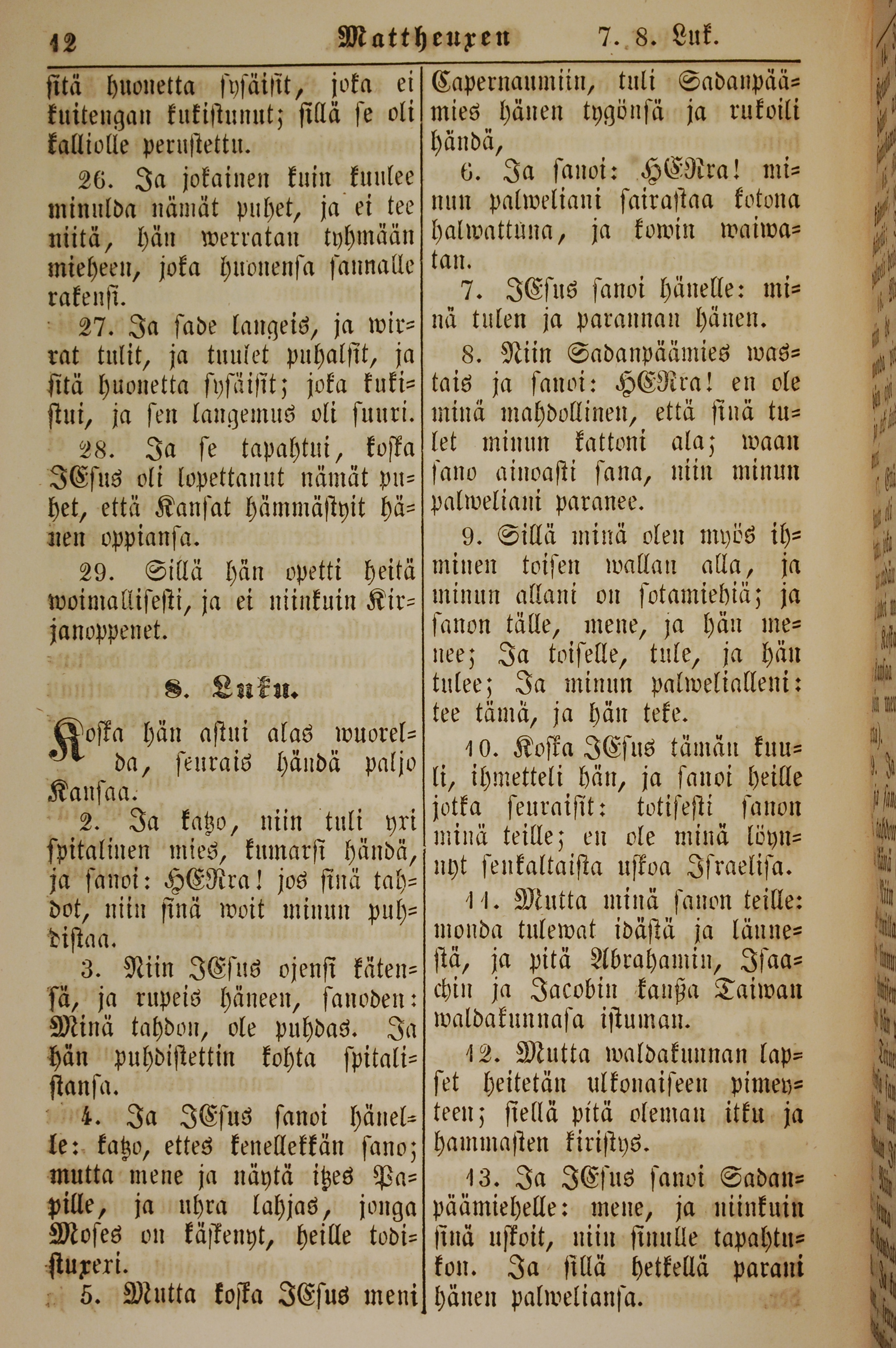 1861年新約全書 馬太福音 7 章 26 節到 8 章 13 節