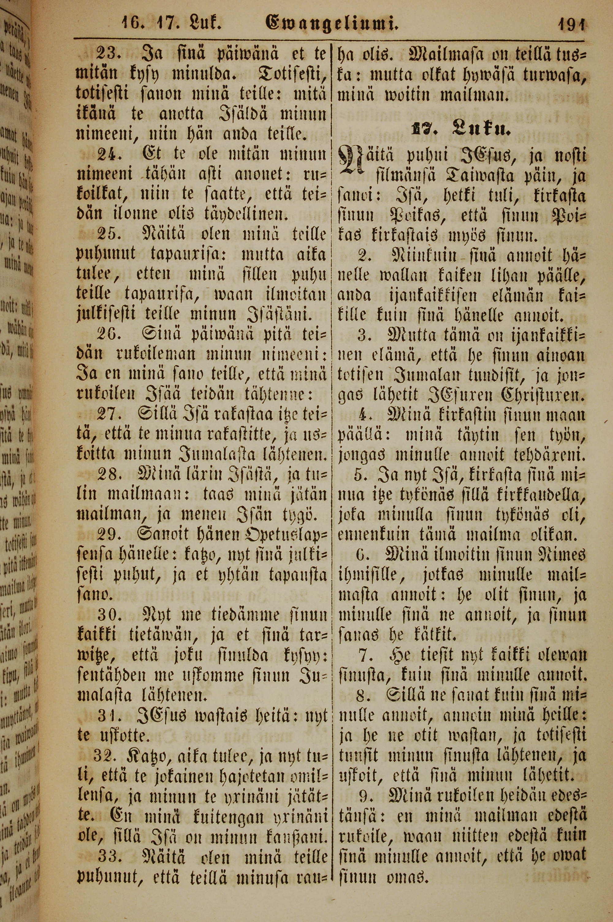 1861年新約全書 約翰福音 16 章 23 節到 17 章 9 節