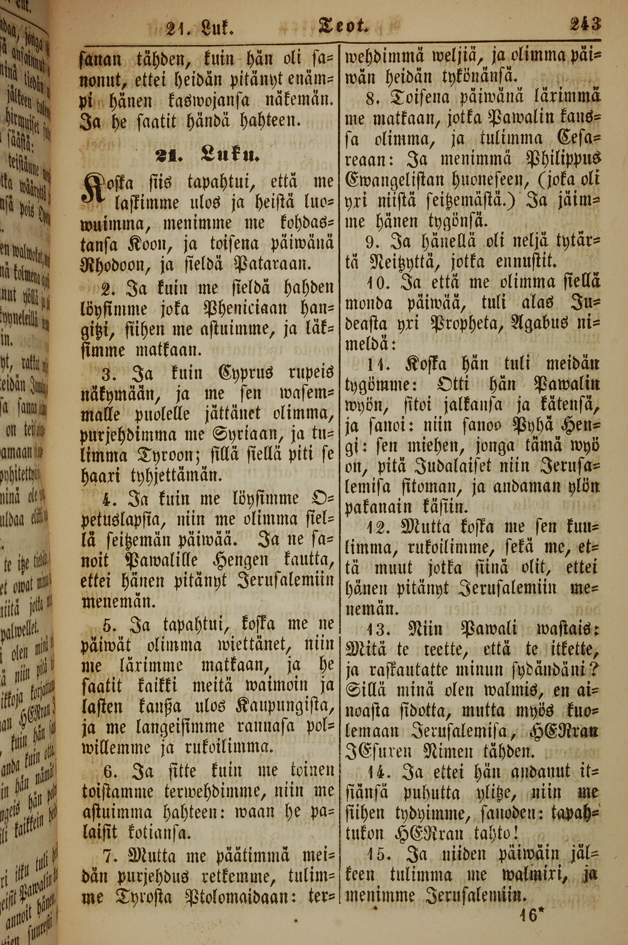 1861年新約全書 使徒行傳 21 章 1 節到 21 章 15 節