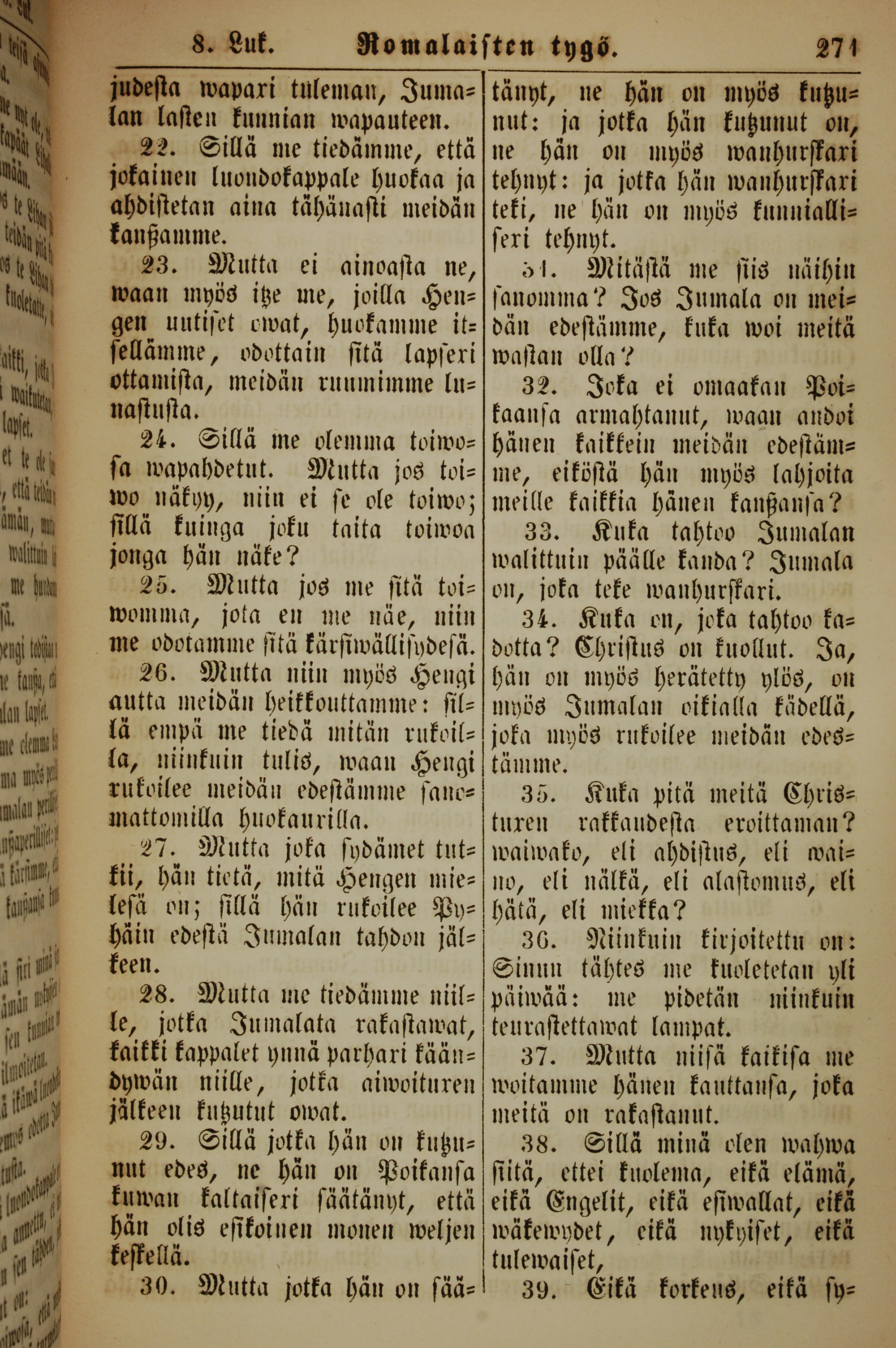 1861年新約全書 羅馬書 8 章 22 節到 8 章 39 節