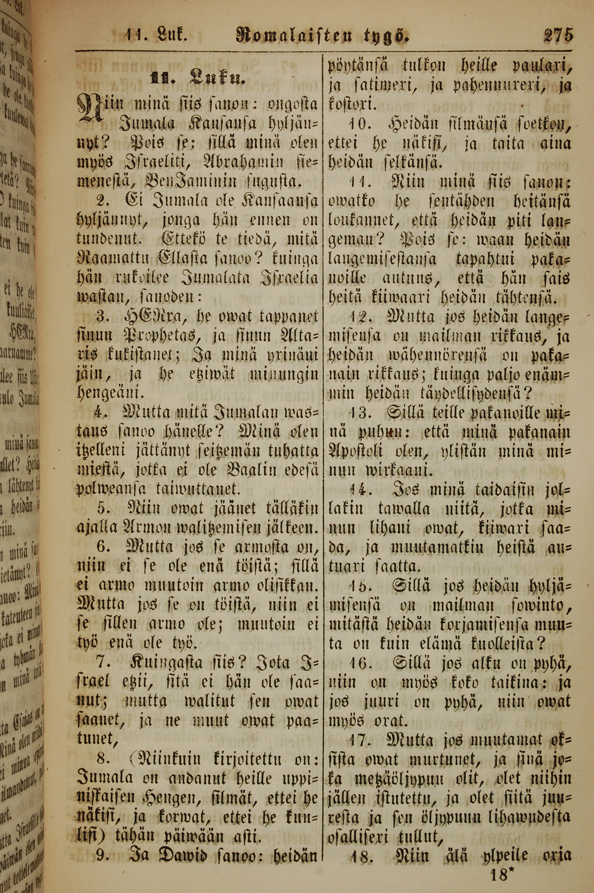 1861年新約全書 羅馬書 11 章 1 節到 11 章 18 節
