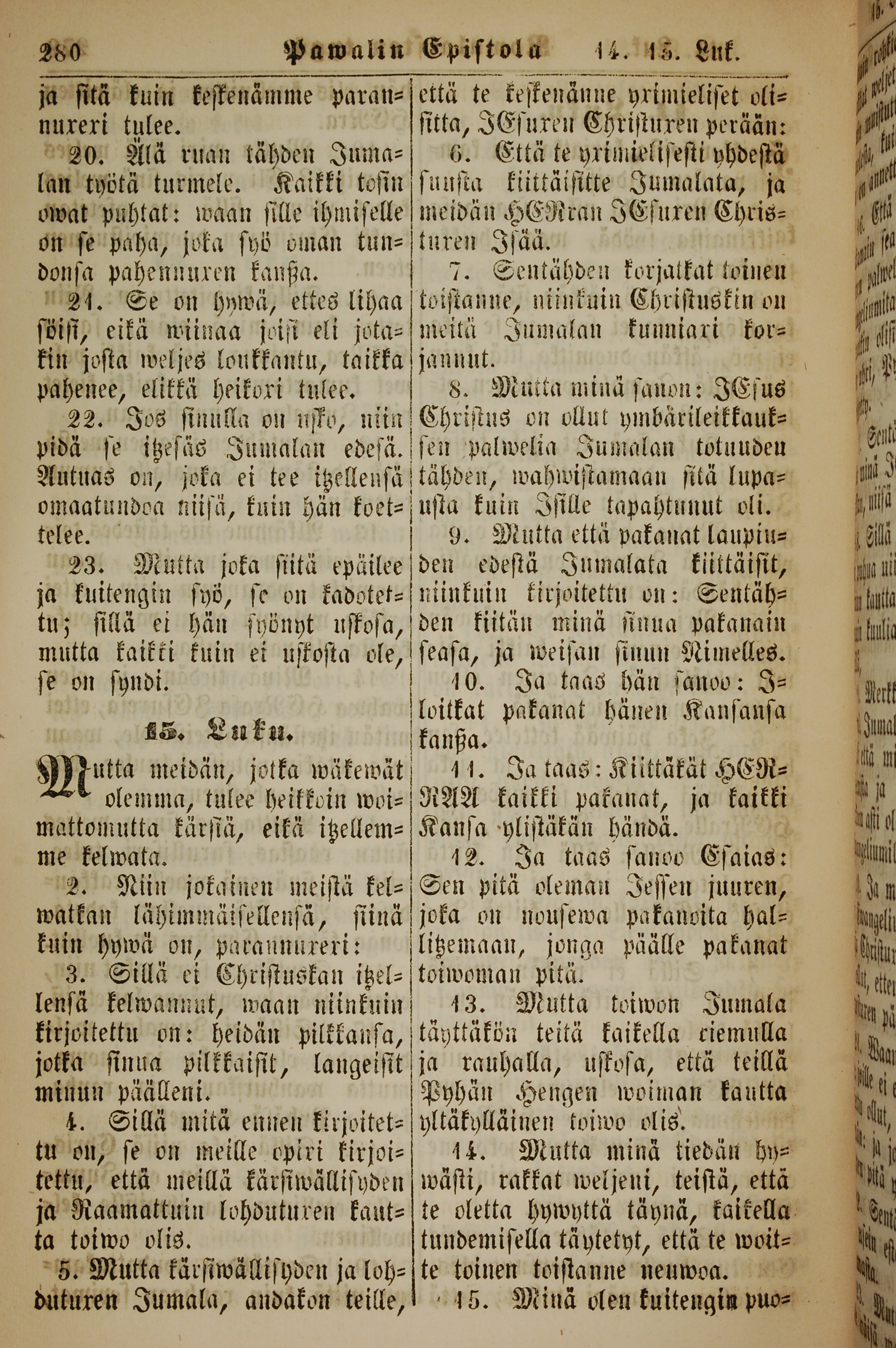 1861年新約全書 羅馬書 14 章 20 節到 15 章 15 節