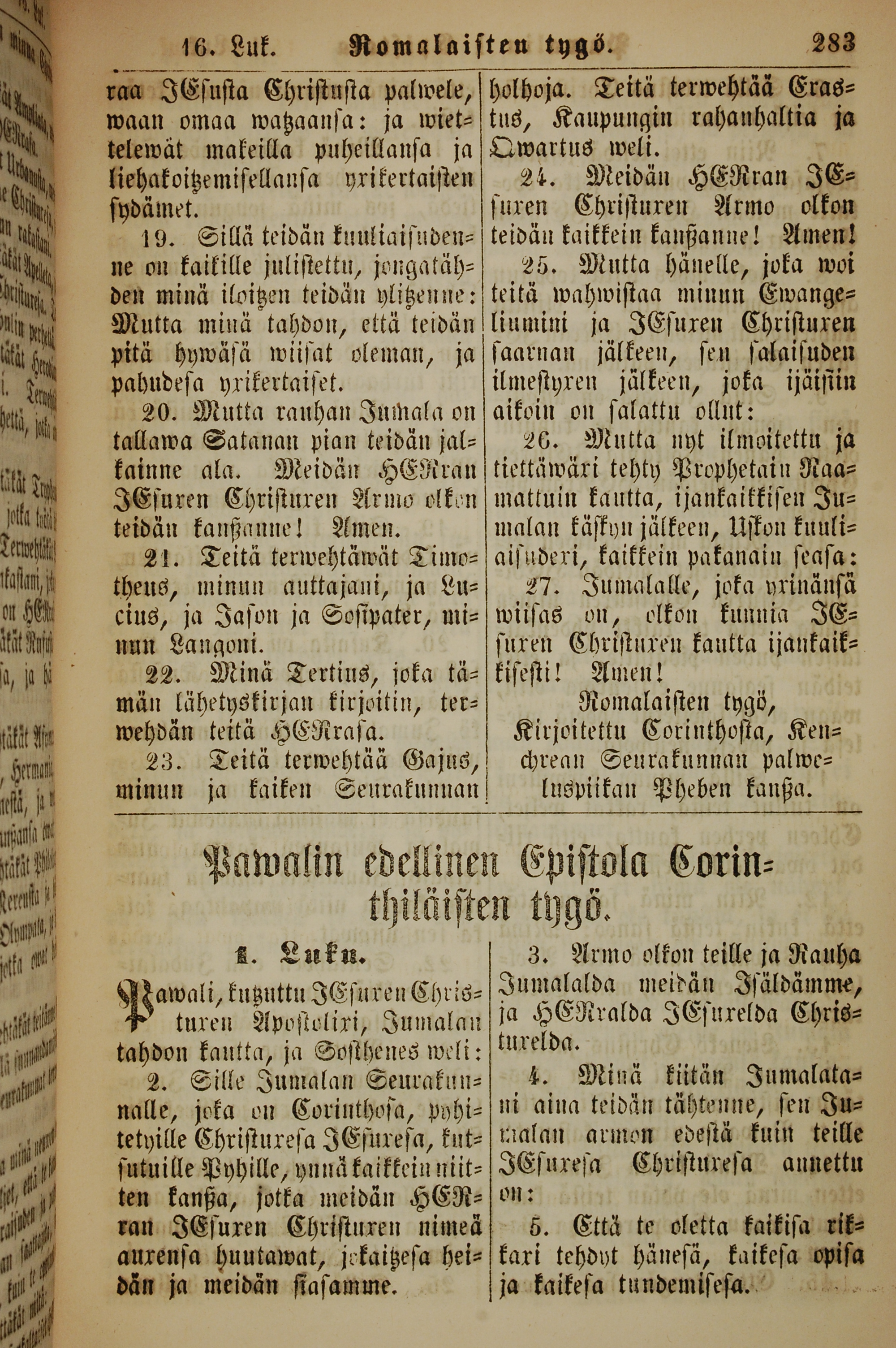 1861年新約全書 羅馬書 16 章 19 節到 16 章 27 節